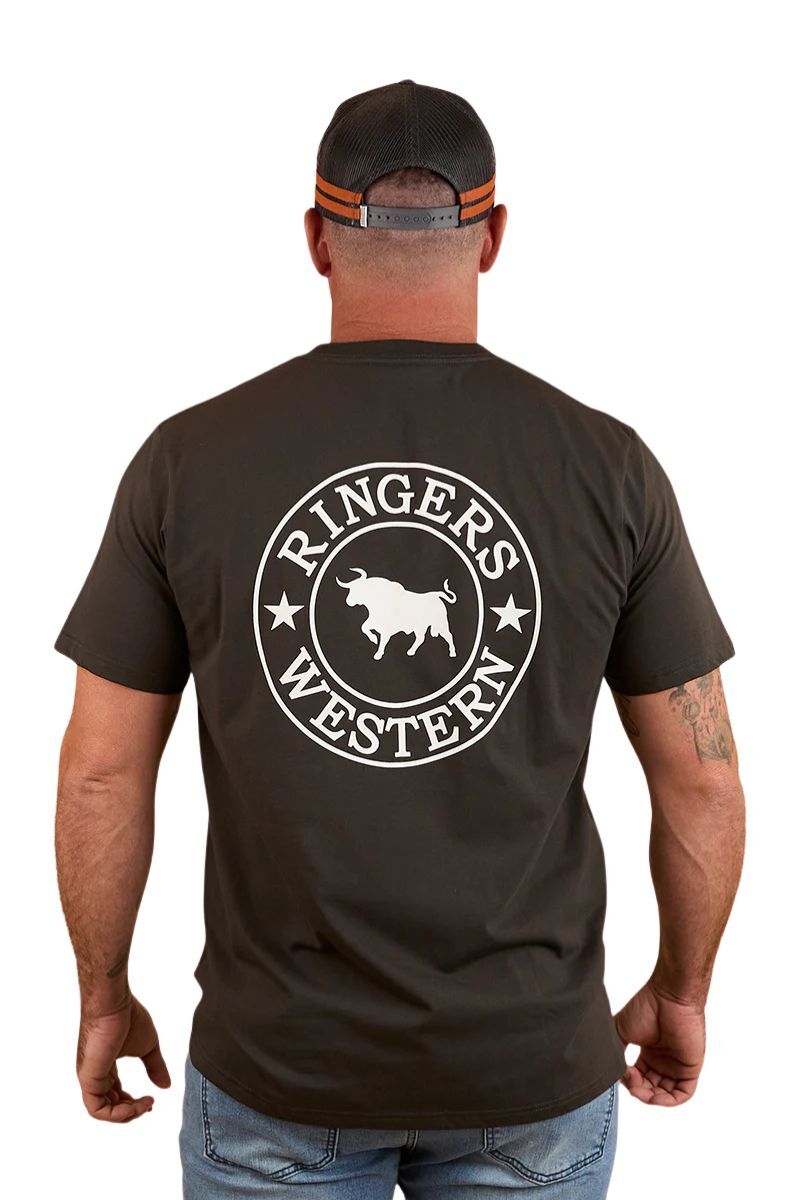 Ringers Western Mens Signature Bull Loose S/S Tee (120201560) Charcoal/White S
