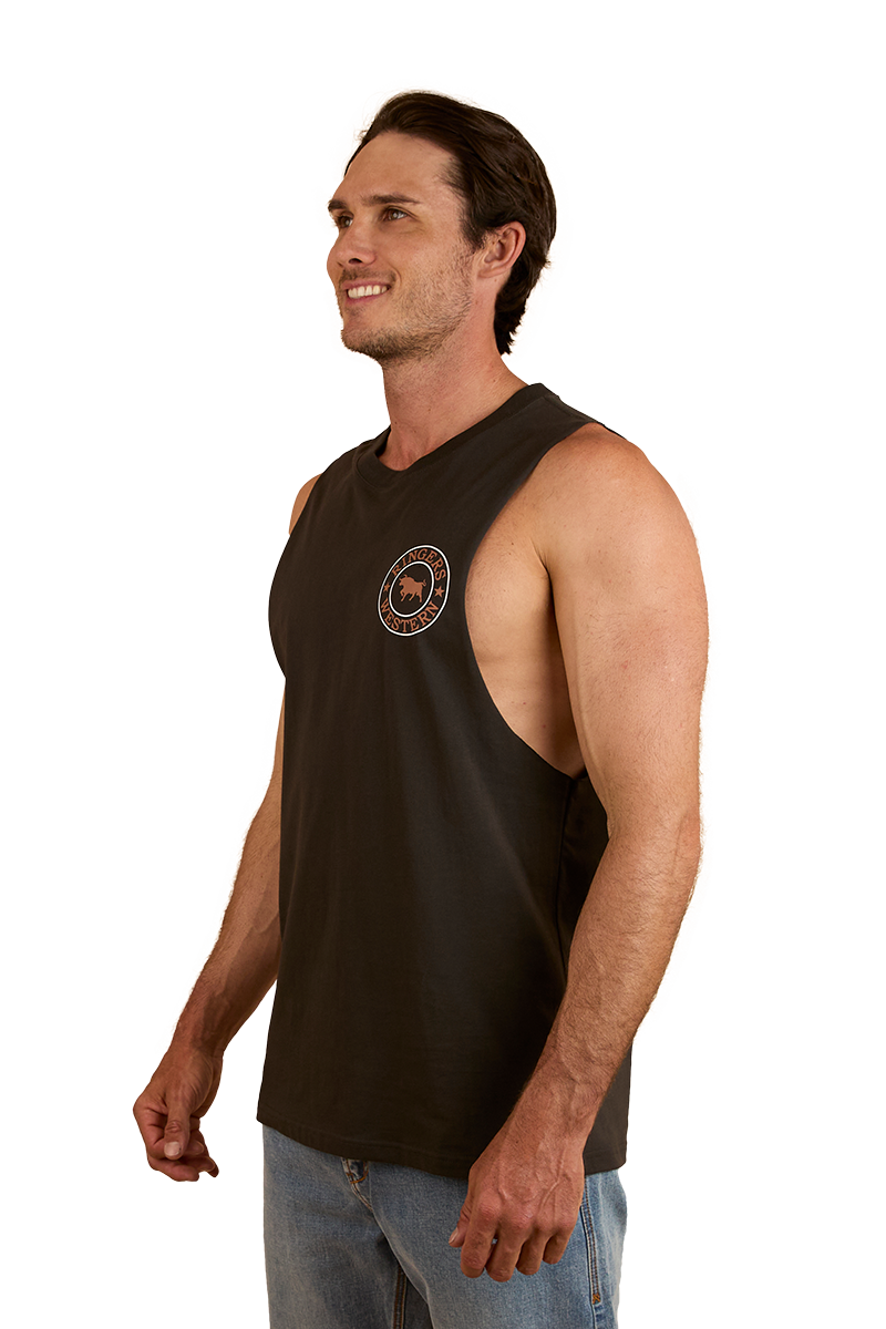 The same Signature Bull print you all know and love on a muscle tank. Designed for those who embrace everything country, this muscle tank combines strength and style in a way that's unmatched. Crafted from premium, soft and breathable fabric, this tank offers durability while keeping you cool under the hot Aussie sun. The raw edge adds a touch of ruggedness, perfect for our cowboys and cowgirls. If you are after comfort, this muscle tank definitely has you covered.