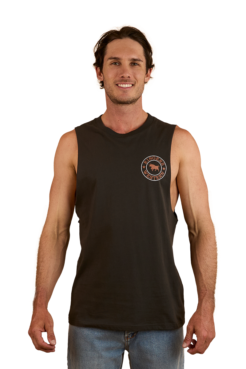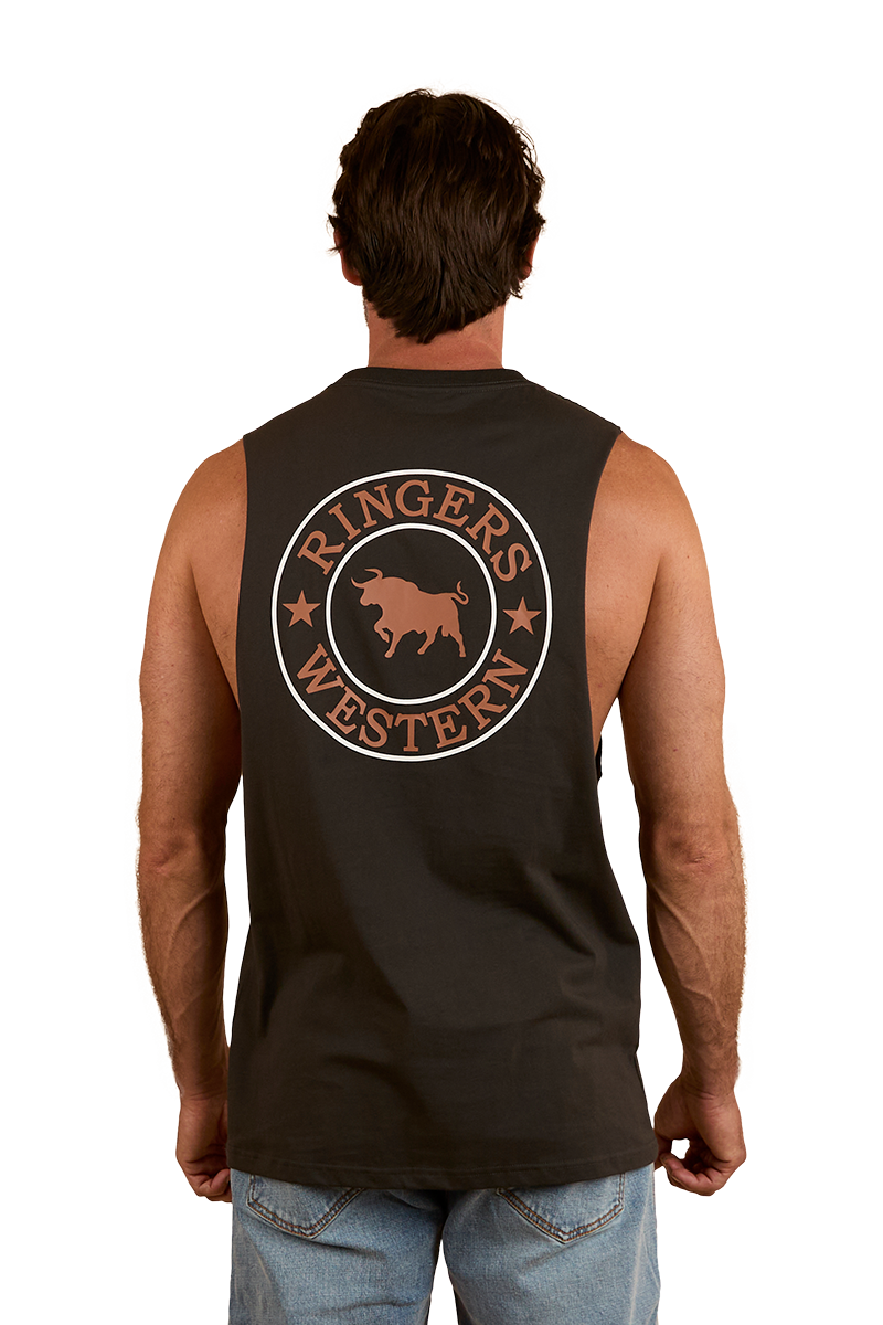 Ringers Western Mens Signature Bull Muscle Tank (117102002) Charcoal/Copper S