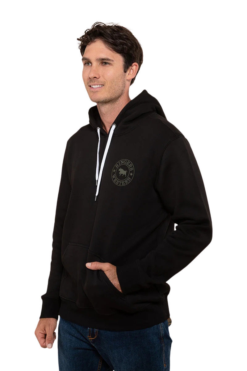 Ringers Western Mens Signature Bull Pullover Hoodie (123050RW) Black/Military Green S