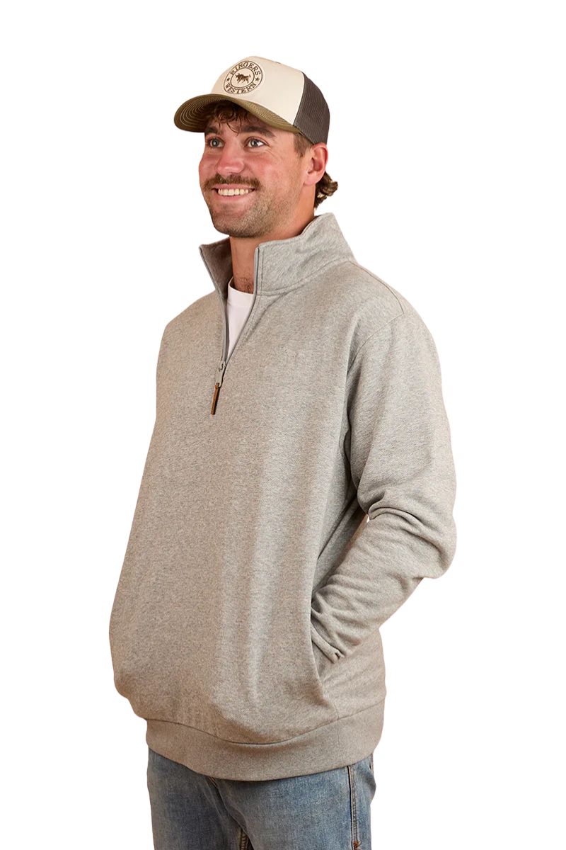 Elevate your casual wardrobe with the Strand mens 1/4 crew neck - a fusion of versatility, comfort and style. Made from a cotton polyester blend, this fabric offers a soft feel against the skin while ensuring durability for long-lasting wear. The ribbed sleeve cuffs and hem bask allow a snug fit around the waist and will stop any unwanted airflow. The crew neck offers timeless appeal, making it suitable for various occasions, from casual outings to semi-formal gatherings. The Strand features subtle Ringers Western branded detailing, from the leather zip pull to a small embroidered bull logo on the front chest. Whether paired with jeans for a relaxed weekend look or worn as a layered item for a polished ensemble, our Strand crew will complement the modern gentleman's lifestyle.