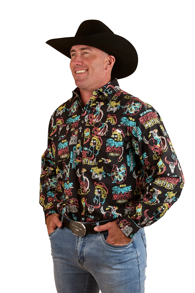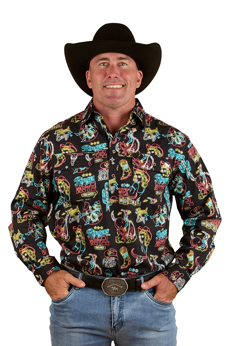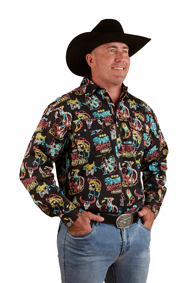 Created from 100% premium cotton, this shirt has a super soft feel against the skin whilst being a breathable and durable option. The loose fitting design provides freedom of movement, keeping you cool and comfortable in classic Ringers Western style. A UPF 50+ rating offers superior protection from the sun, making this shirt a smart and fashionable choice that is perfectly suited to the Australian climate. The half button placket allows for easy wearing with added ventilation when required. The Dyno comes alive with an allover signature print, blasting you with a vintage, neon barroom glow. Built for the grind of the work day but ready to take on the night, the Dyno Limited Edition Work shirt has got your back.