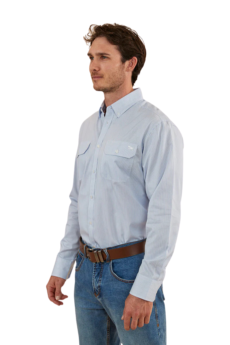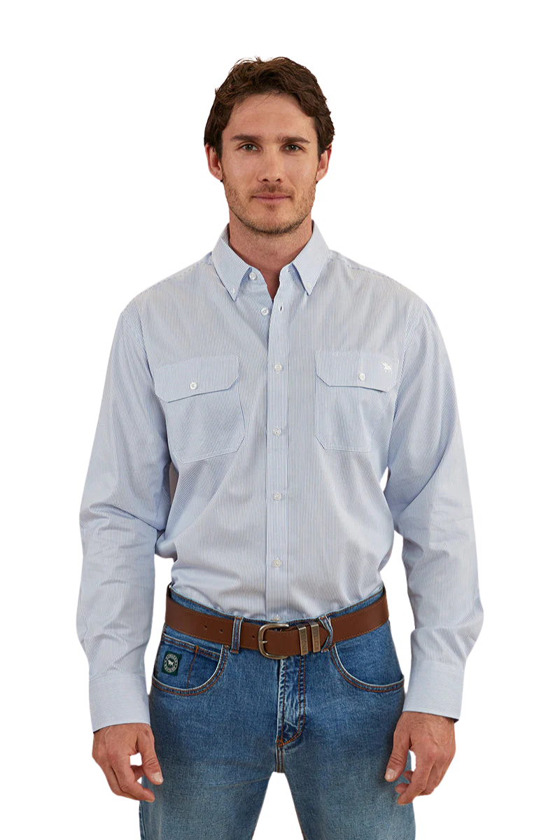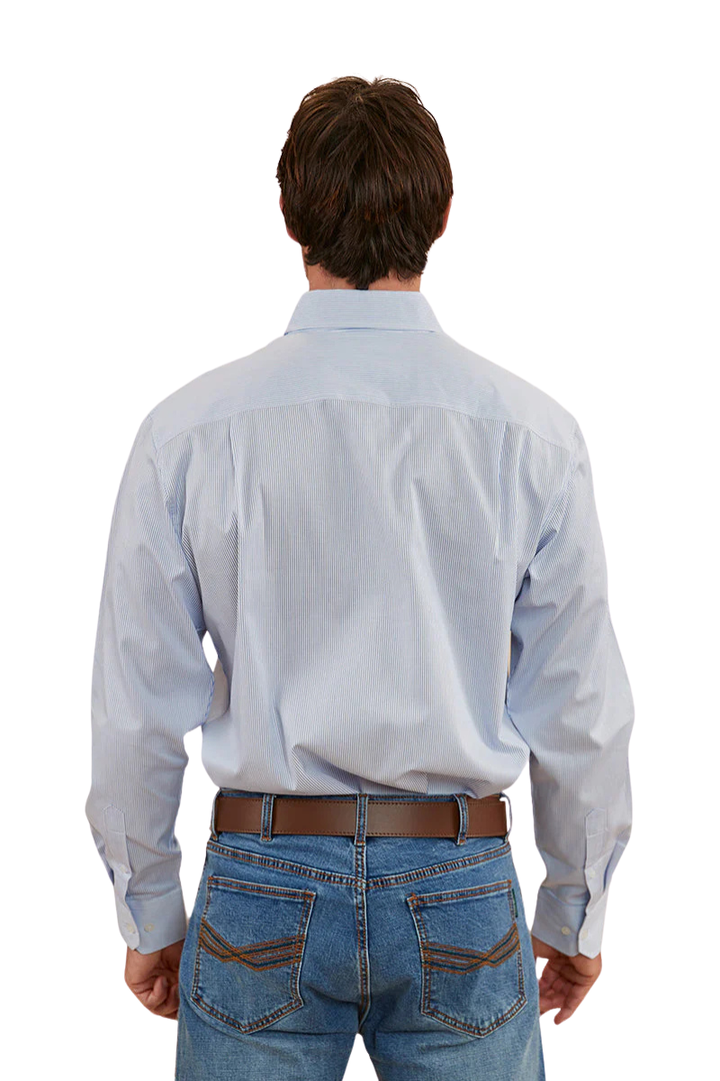 Ringers Western Mens Whyalla L/S Stripe Dress Shirt (123006RW) White/Blue L [SD]