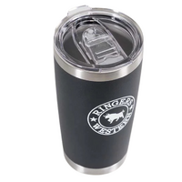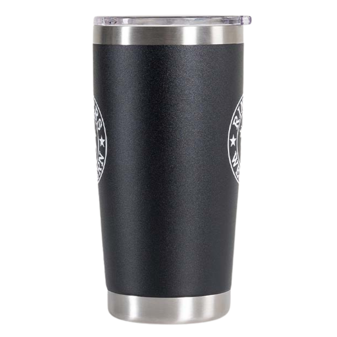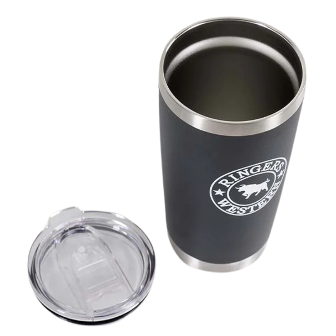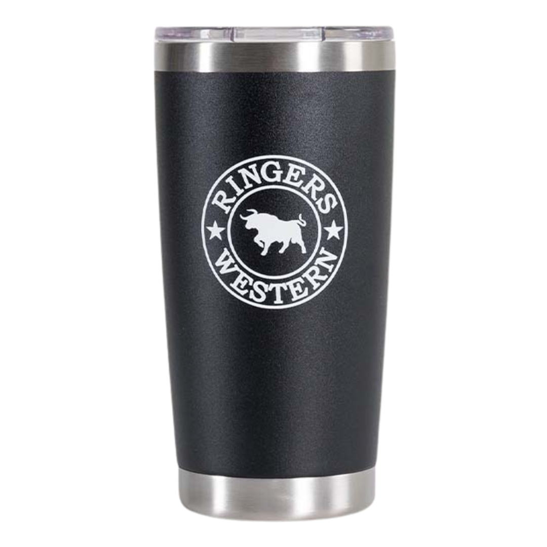 A go-to for drinks on the go, the Riverstone tumbler is the perfect companion, fitting perfectly inside your cup holder. This tumbler is made from 18/8 kitchen-grade stainless steel and rust resistant. The double-wall vacuum insulation will keep your morning coffee hot up until the very last sip. The acrylic sipping lid adds a layer of protection keeping your coffee contained and will help prevent major spills. It features a printed Ringers Western logo on the front and back of the cup.