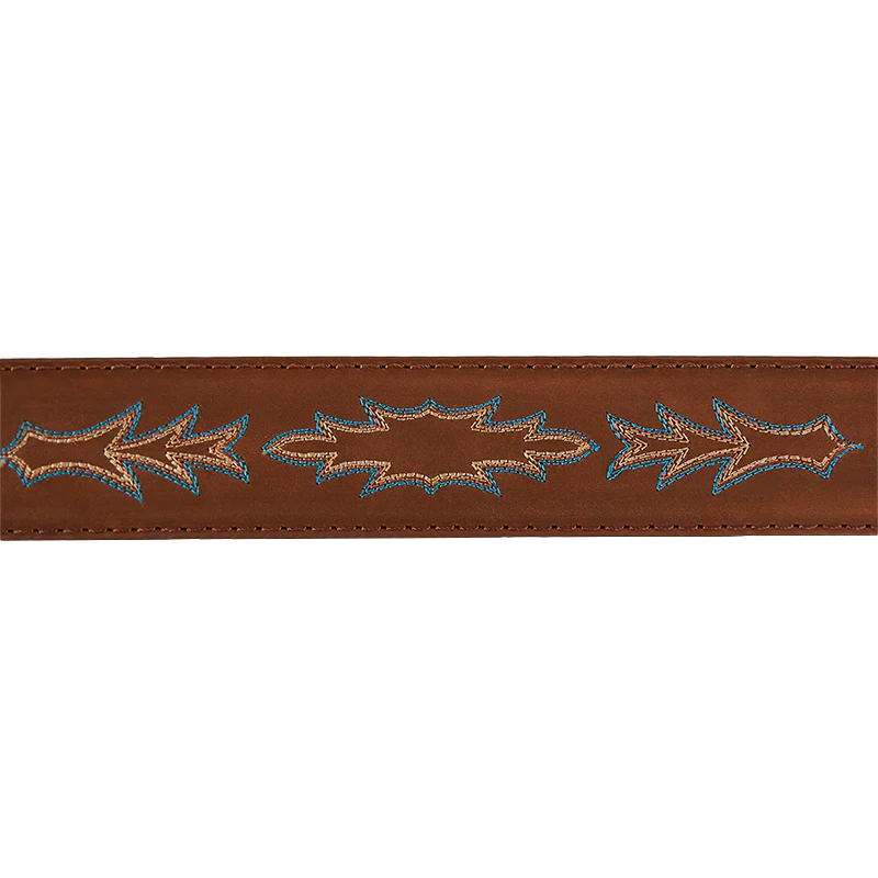 At a standard 1 1/2" width, this belt is cafted in premium genuine leather for durability and timeless appeal. With a removable buckle so that you can change your look with any buckle you choose, the Longreach features two-tone leather panelling to add depth and character. Intricate embroidered details along the length of the belt give it an undeniable western finish.