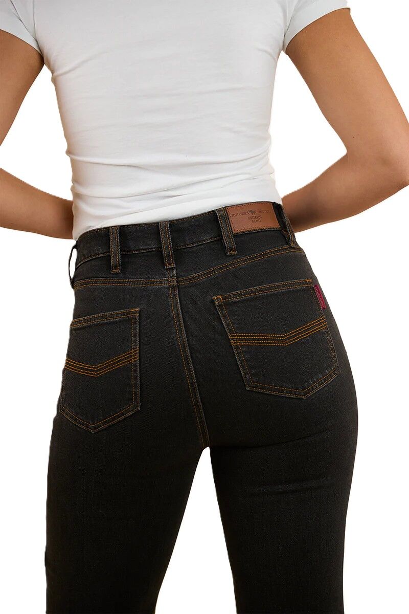 Designed for today’s cowgirl, the Betsy Bootleg jeans offer a flattering high-rise fit that sits comfortably above the belly button, snugly shaping the waist and hips before easing out into a classic bootleg. The unique side-split hem provides extra flexibility, ensuring freedom of movement whether you’re riding or out on the town. With an exposed button fly that adds a modern twist, these jeans boast both functionality and style. Crafted from a robust yet flexible 12.5oz cotton blend with a touch of elastane, they provide just the right amount of stretch, ensuring you look and feel your best in true Western style.