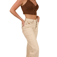 Designed for today’s cowgirl, the Betsy Bootleg jeans offer a flattering high-rise fit that sits comfortably above the belly button, snugly shaping the waist and hips before easing out into a classic bootleg. The unique side-split hem provides extra flexibility, ensuring freedom of movement whether you’re riding or out on the town. With an exposed button fly that adds a modern twist, these jeans boast both functionality and style. Crafted from a robust yet flexible 12.5oz cotton blend with a touch of elastane, they provide just the right amount of stretch, ensuring you look and feel your best in true Western style.