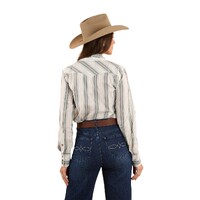 The Bubba Women's Western Shirt is a perfect balance of style and practicality. Crafted from 100% cotton, it’s lightweight, breathable, and effortlessly comfortable. The timeless striped design, pointed collar, and pleated sleeves give it a refined, tailored edge, while marble snap buttons and dual chest pockets add a touch of rugged sophistication.