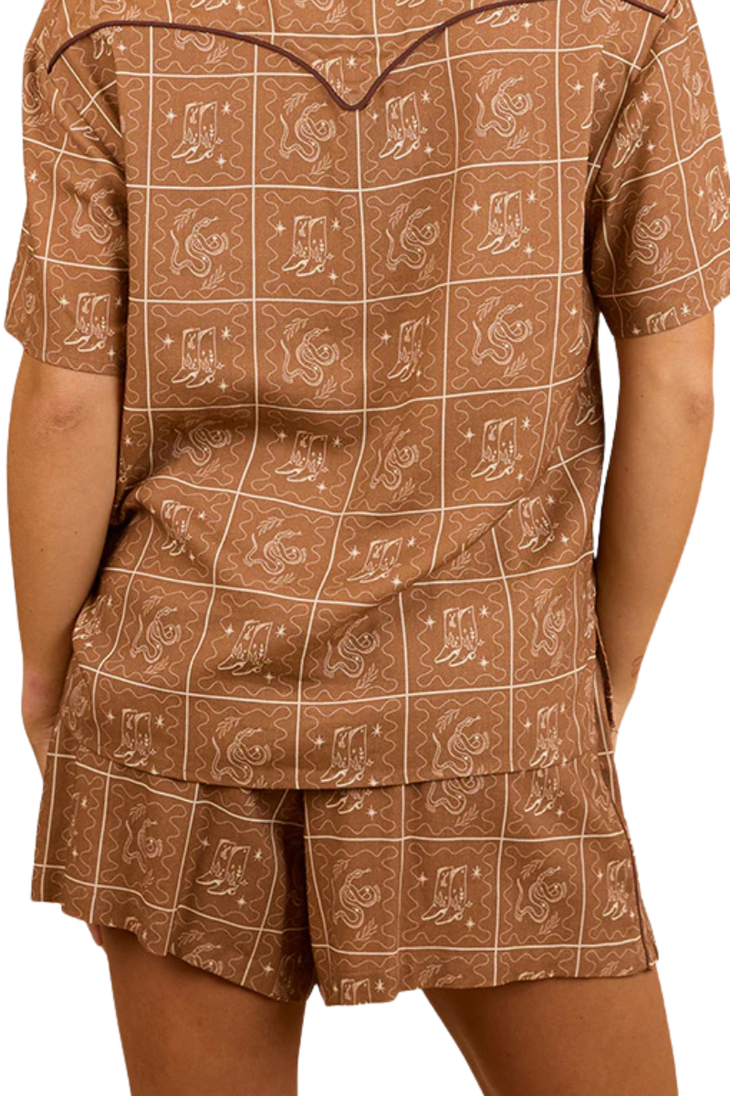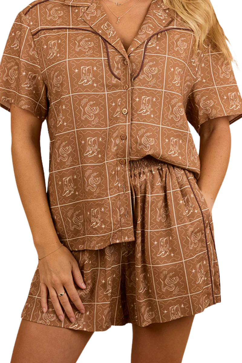 Created from a blend of Rayon and Linen, the Cody shorts offer softness, comfort and breathability, making them perfect for balmy days spent enjoying the Australian summer. An all over western inspired print makes a statement whilst being a nod to the country lifestyle. Side seam pockets are functional and fashionable details, enabling you to store small belongings whilst looking the part. A mock fly is a stylistic touch without the added bulk of a traditional zipper fly, allowing for a more streamlined fit and easy wearability. Ringers Western labels finish the Cody Shorts off in true Ringers style.