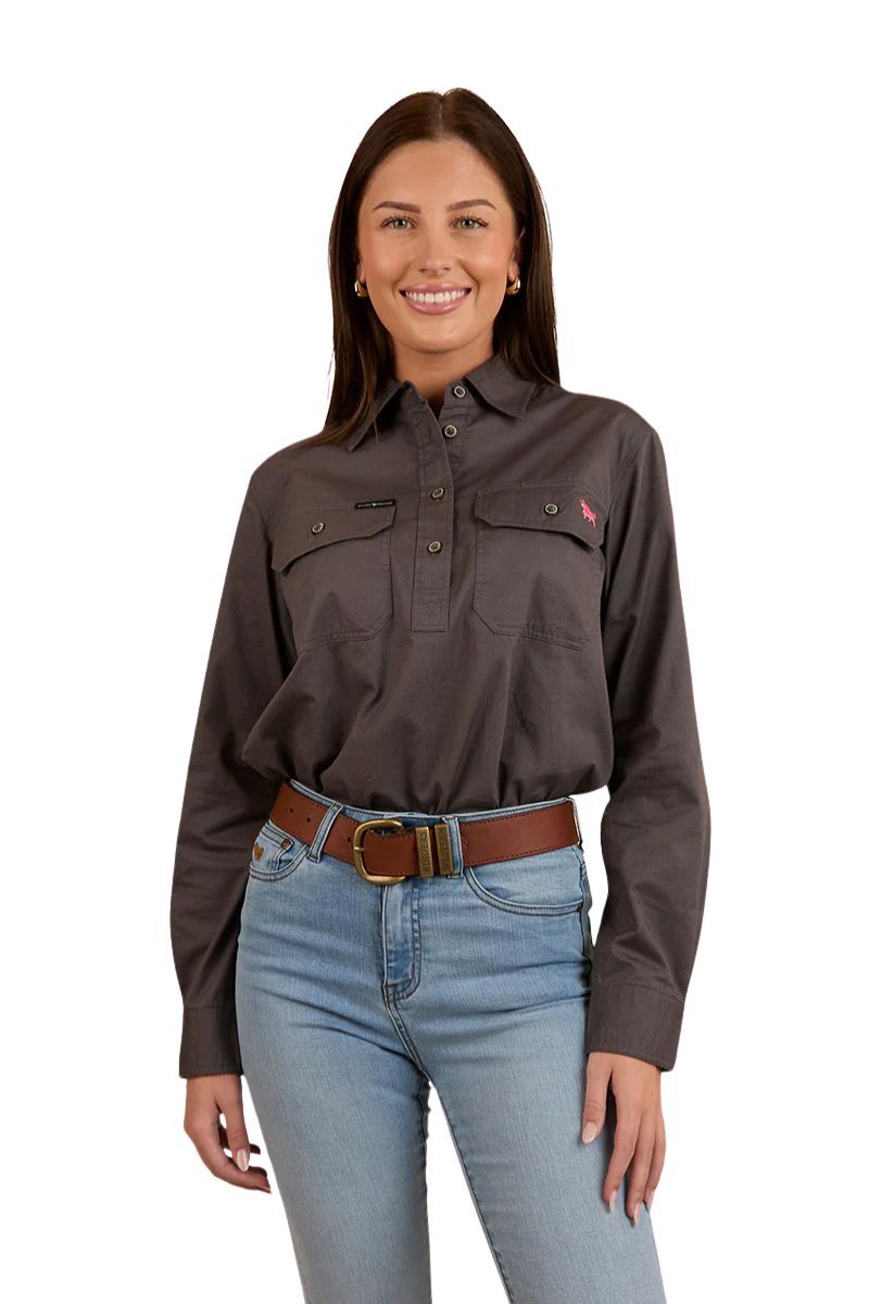 Created from 100% cotton, this hard working shirt offers unrivalled breathability whilst having an extremely soft feel against the skin. The loose fitting design provides freedom of movement, keeping you comfortable in all situations, while the UPF 50+ rating provides superior protection from the sun. The half button placket is easy wearing, tuck into your favourite jeans for a classic country outfit that will have you looking polished from dusk to dawn. Completed with a large Ringers Western feature embroidery in a pop of Pink, the Condora is a must-have in every cowgirl's collection.