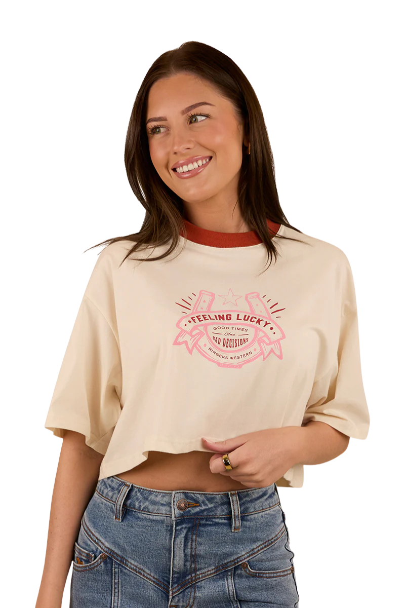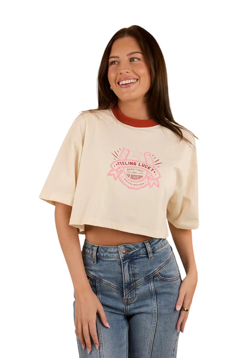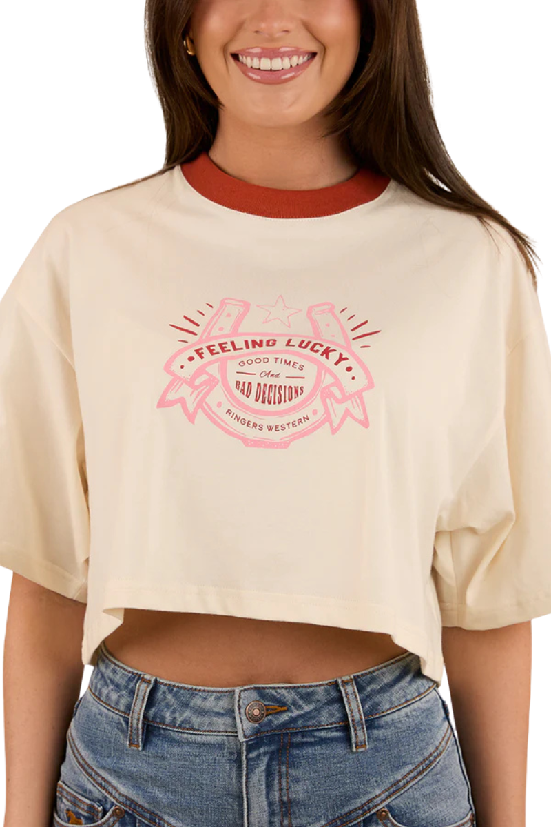 Ringers Western Womens Feeling Lucky Cropped Oversized S/S Tee (224069RW) Off White 8