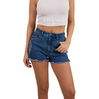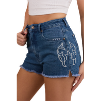 Nothing screams country music festival like a pair of denim shorts. The Gracie denim shorts are a Summer essential; they are a true statement of elegance and Western flair. The Gracie short is made from a cotton stretch blend providing durability and breathability for a nice and comfortable fit all day long. These shorts have the Ringers Western high-rise fit which is designed to rest comfortably above the belly button and neatly come in through the hip and seat for a slightly formed fit. Gracie features a traditional five-pocket design and seven belt loops which fits any standard-width belt. This range features a feature embroidery design on the back pockets and a raw hem for added rustic allure.