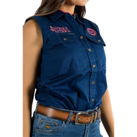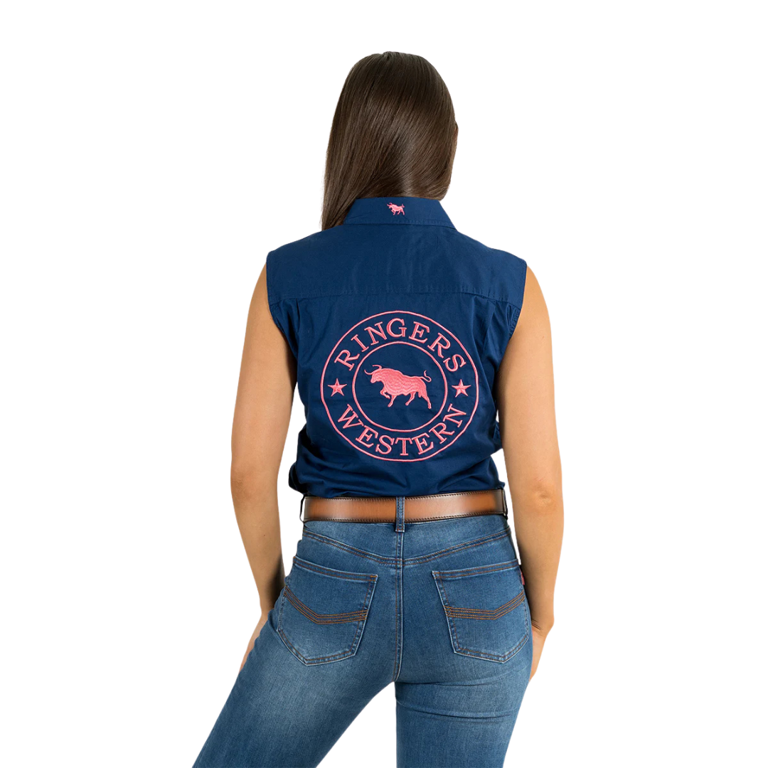 Ringers Western Womens Jillaroo Sleeveless Workshirt (220210991) Navy/Melon Embroidery 6