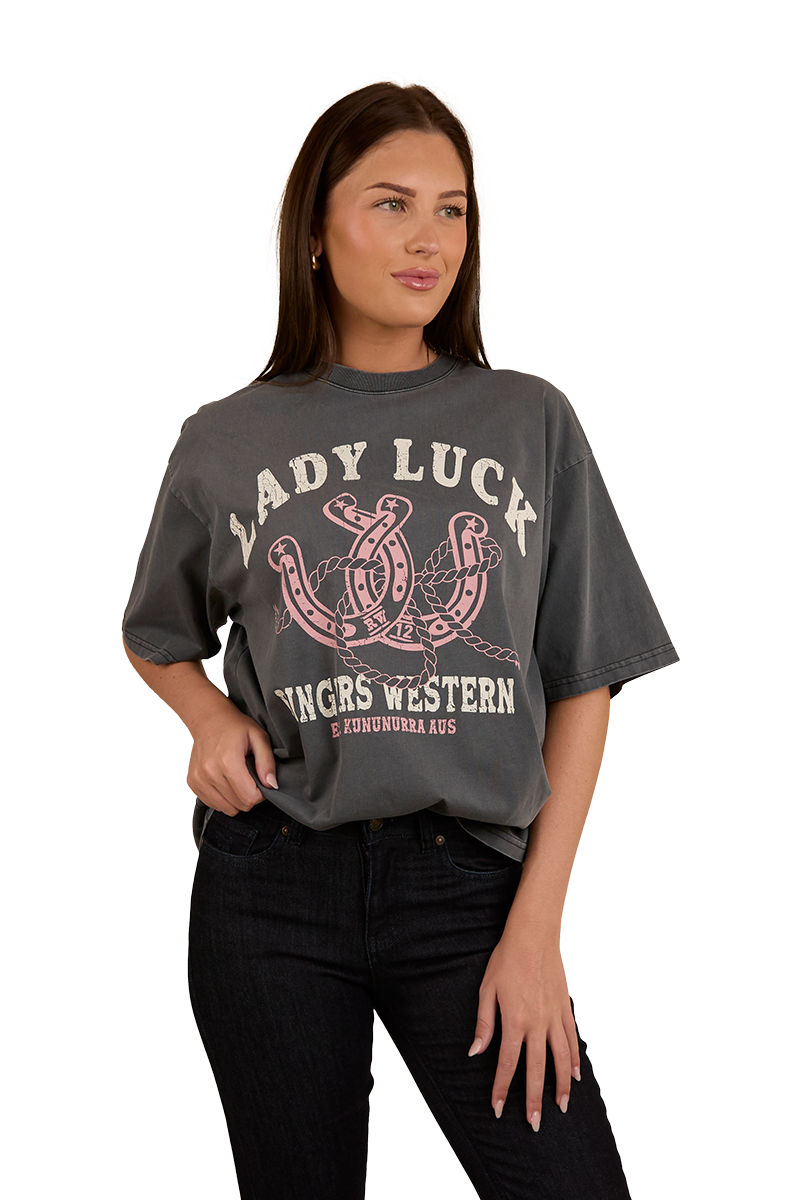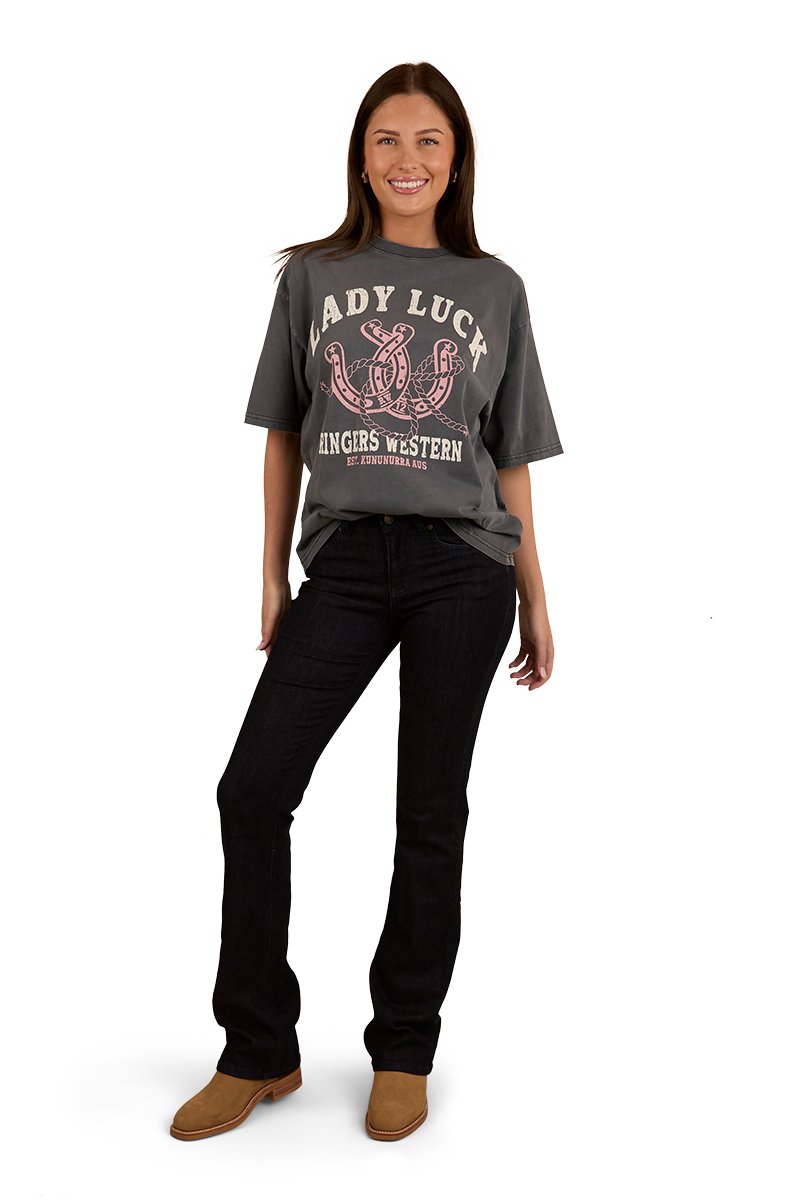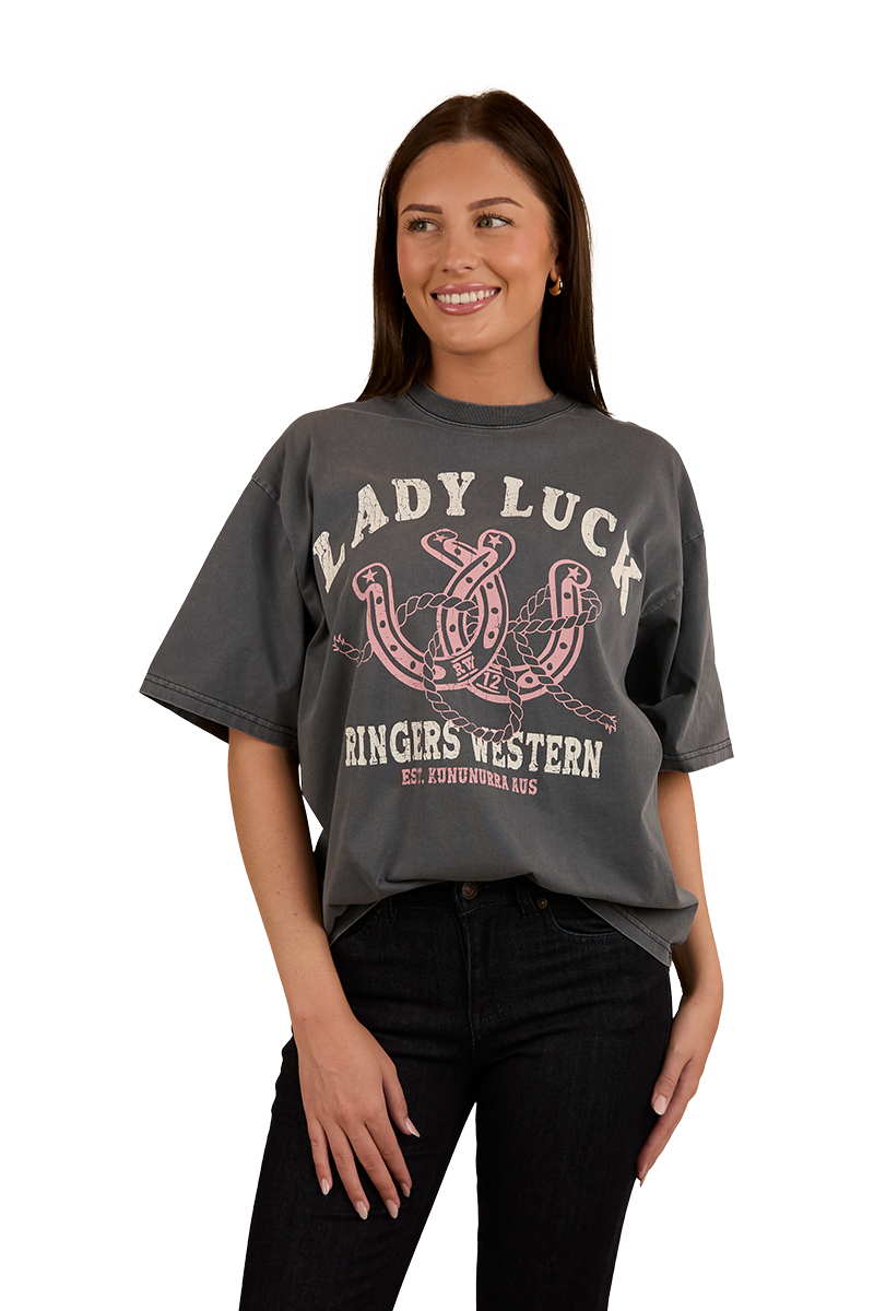 Ringers Western Womens Lady Luck Oversized S/S Tee (224068RW) Washed Black 6
