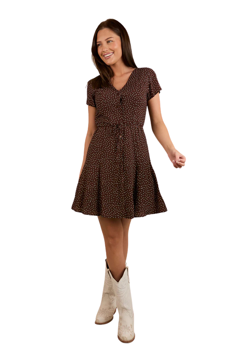 Ringers Western Womens Marrabel S/S Mini Dress (224074RW) Chocolate/White 6