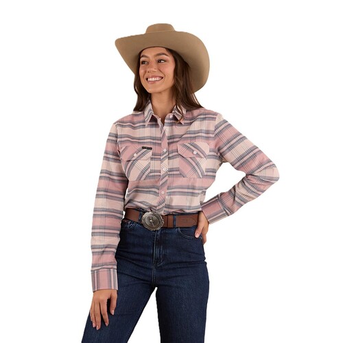 Ringers Western Womens Millicent Full Button L/S Flannel Shirt (224015RW) Rosey Pink 10