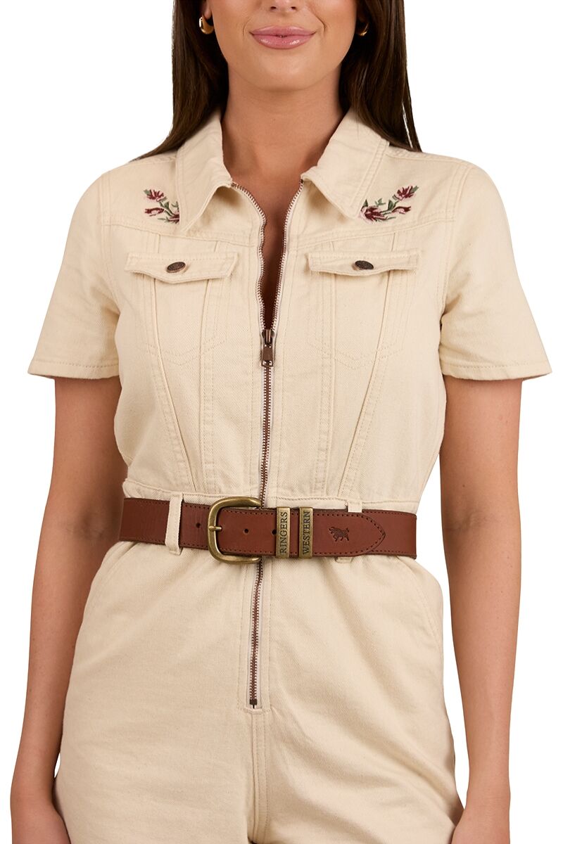 Crafted from 100% cotton denim, the Narooma will keep you cool and comfortable whilst oozing country charm. The unbleached denim adds some freshness to your western wardrobe, the perfect hue for summer time. Features such as a functional front zipper opening and multiple pockets make the Narooma an easy wearing and convenient option that every cowgirl needs in their collection. Western style yokes are a standout feature, whilst signature embroideries add some extra western glam. An elasticated waist band and belt loops allow the Narooma to be worn with or without a belt, depending on your personal style - making this charming playsuit a stylish and versatile summer staple.