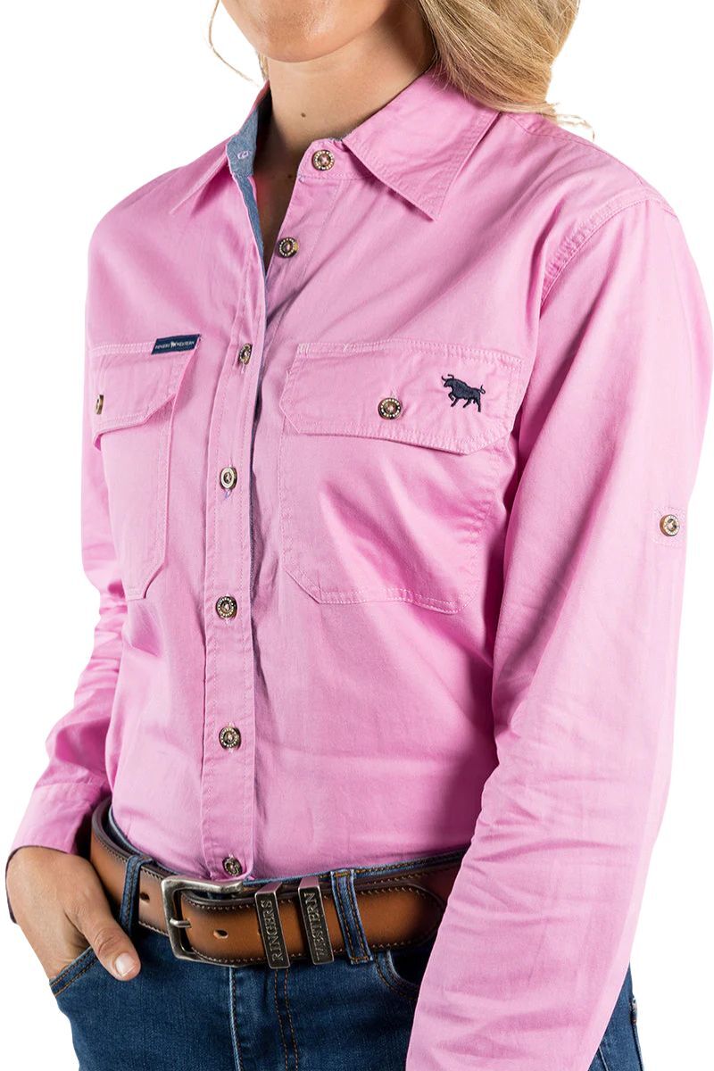 Ringers Western Womens Pentecost River Full Button L/S Work Shirt (171210001) Pastel Pink 10