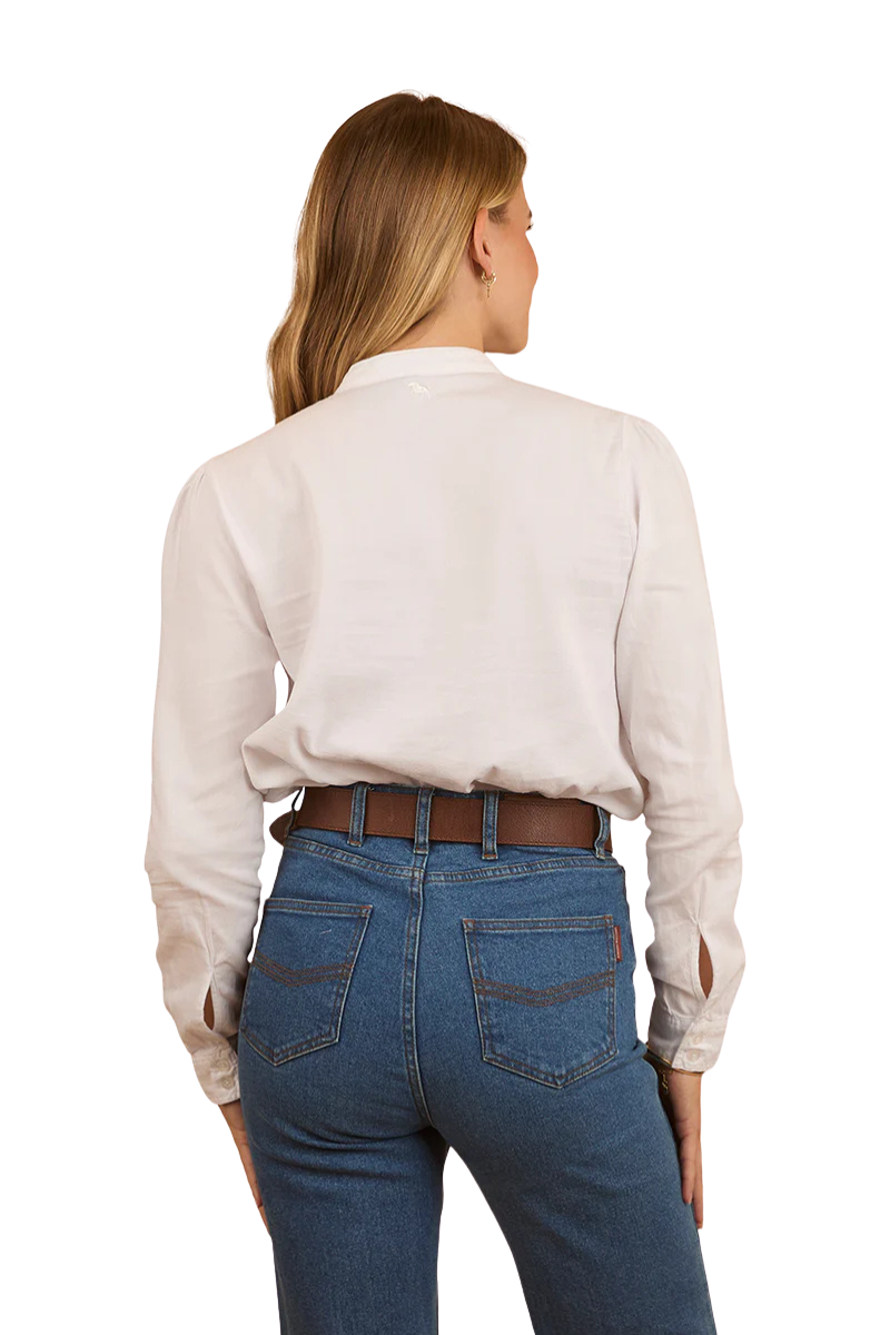 Introducing the Pia Women's Blouse - the versatile item that has a place in every ladies wardrobe. Created from 100% light weight cotton, the Pia is as cool and comfortable as it is classy. A unique stand collar and sleeve cuffs add to the elegant, tailored look of this essential gem. Subtle gathering at the shoulders add a feminine and stylish touch, whilst Ringers Western branded buttons and a signature embroidery at the back of the neck are the cherry on top, finishing off the Pia in true Ringers style.