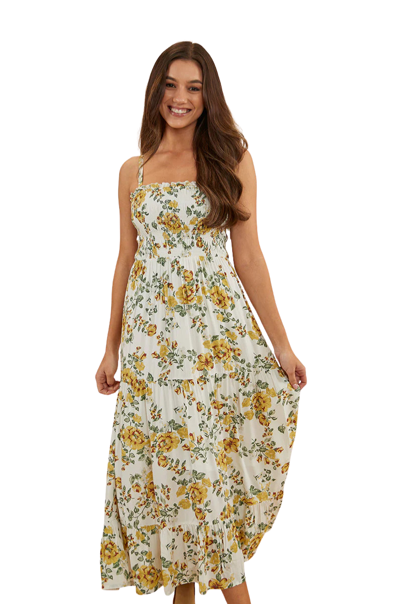 Ringers Western Womens Rosabel Maxi Dress (222134RW) White/Yellow 10 [SD]