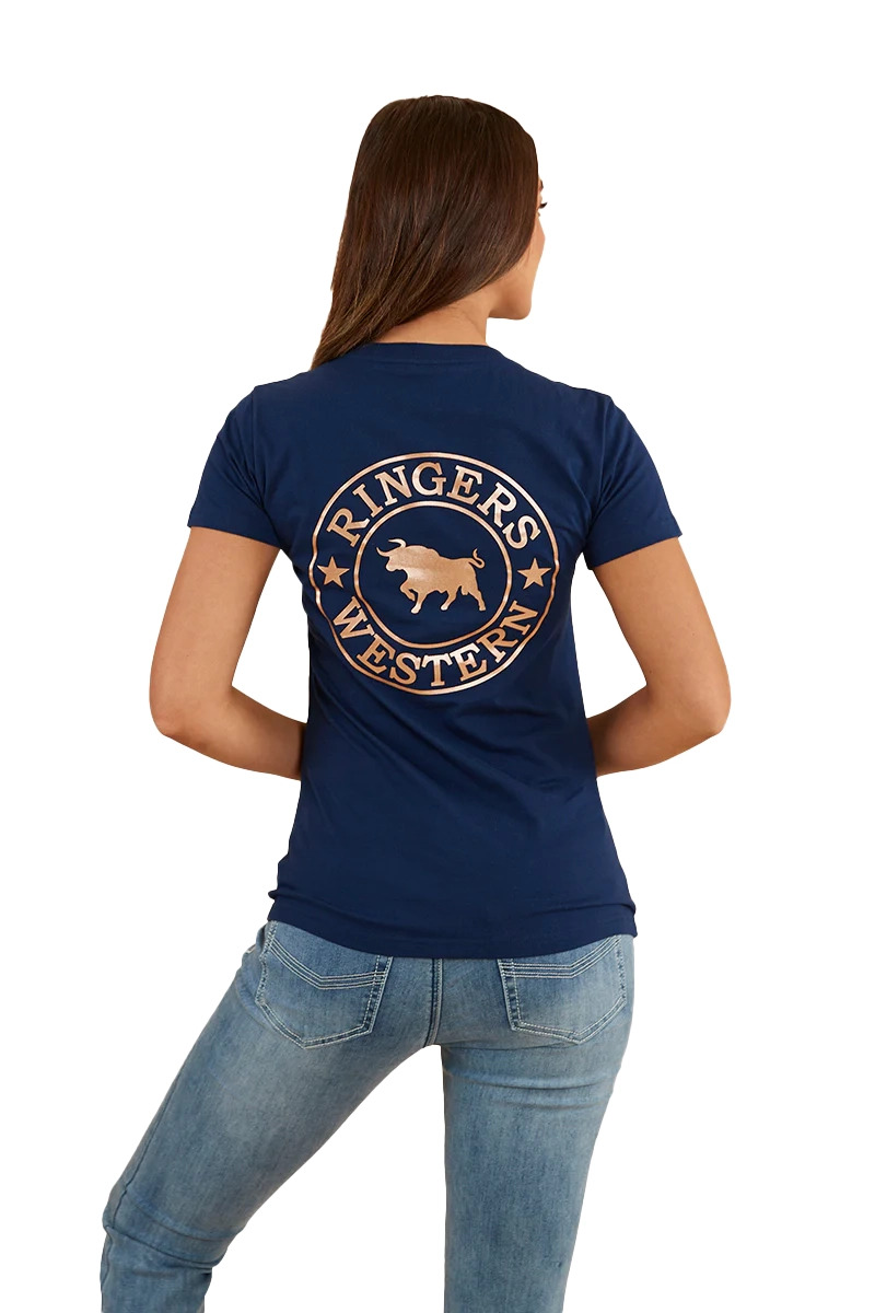 Ringers Western Womens Signature Bull Classic Fit S/S Tee (220016RW) Navy/Gold 10 [SD]