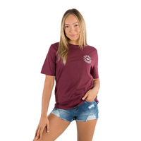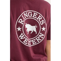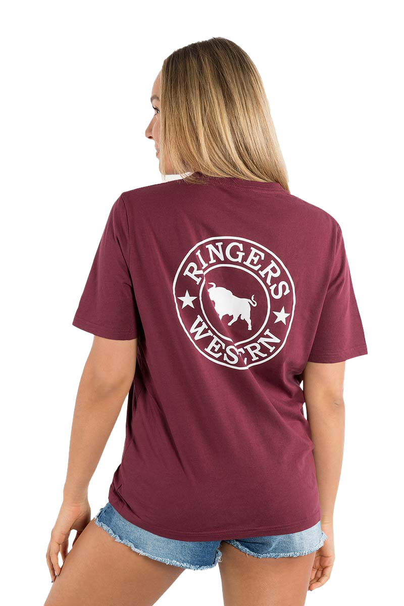 Ringers Western Womens Signature Bull Loose Fit S/S Tee (220018RW) Burgundy/White Print 8