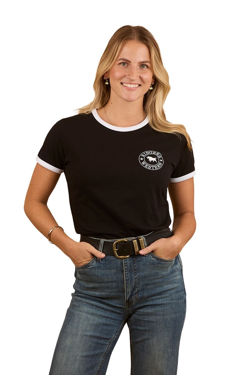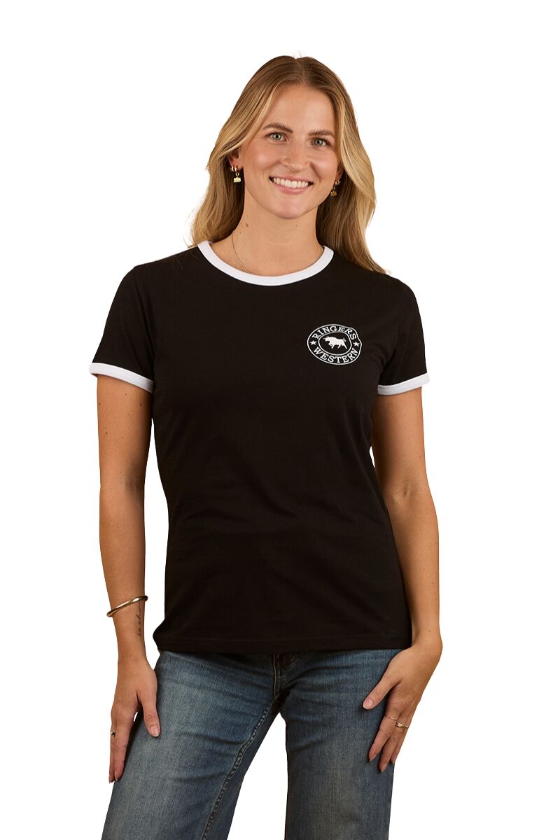 Ringers Western Womens Signature Bull Ringers S/S Tee (225001RW) Black with White Print 6 [SD]
