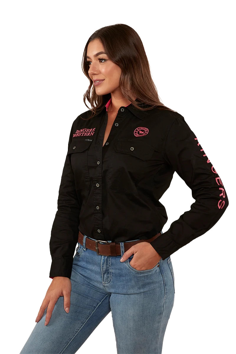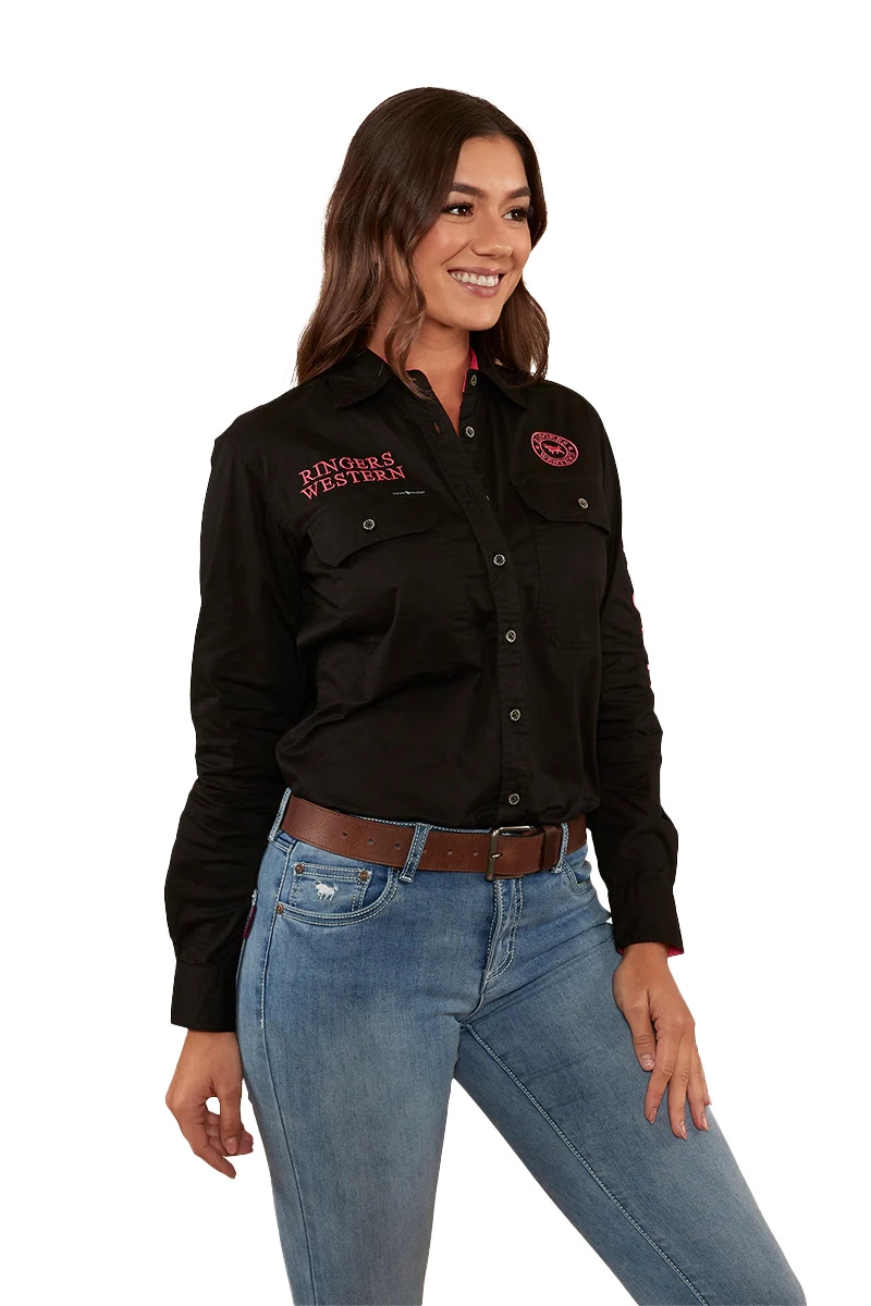 Ringers Western Womens Signature Jillaroo Full Button Work Shirt (218110002) Black/Melon Embroidery 6