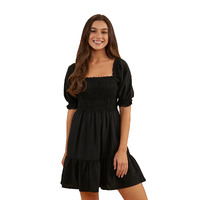Ringers Western Womens Tahlia Shirred Mini Dress (222031RW) Black [SD]