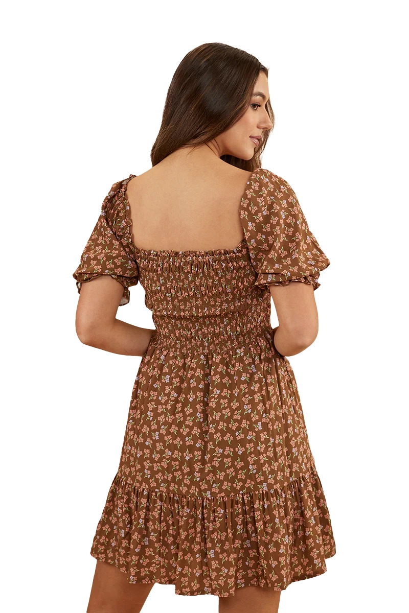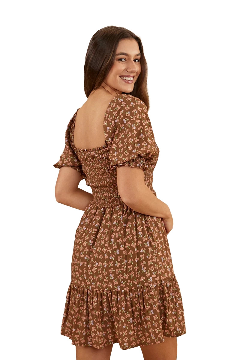 Ringers Western Womens Tahlia Shirred Mini Dress (222031RW) Toffee 8 [SD]