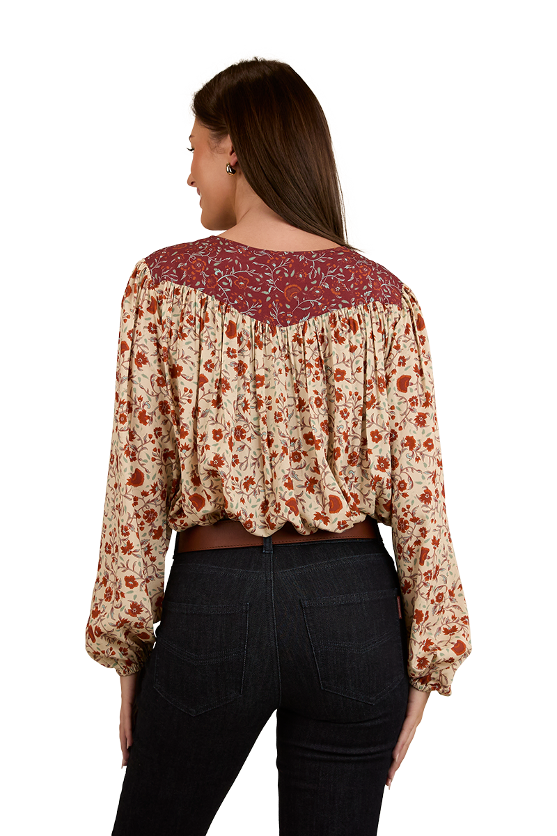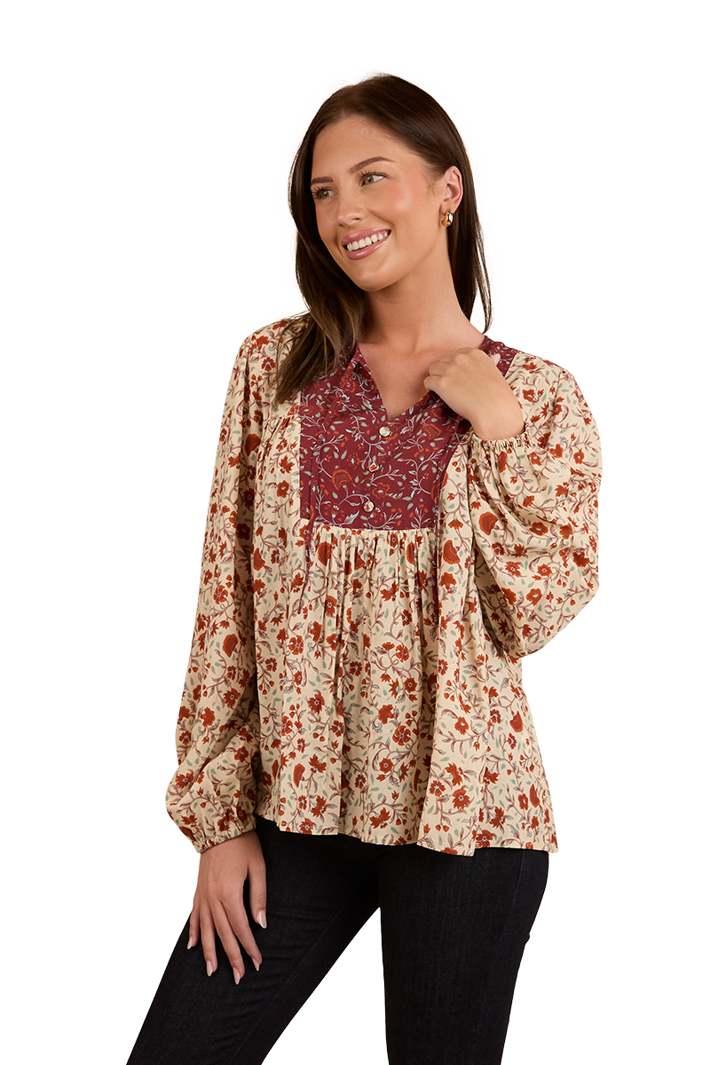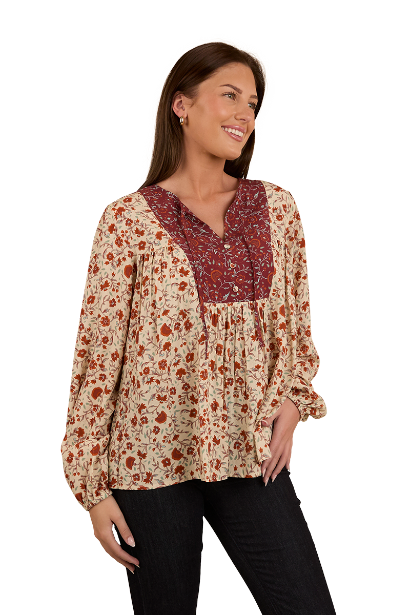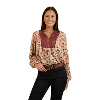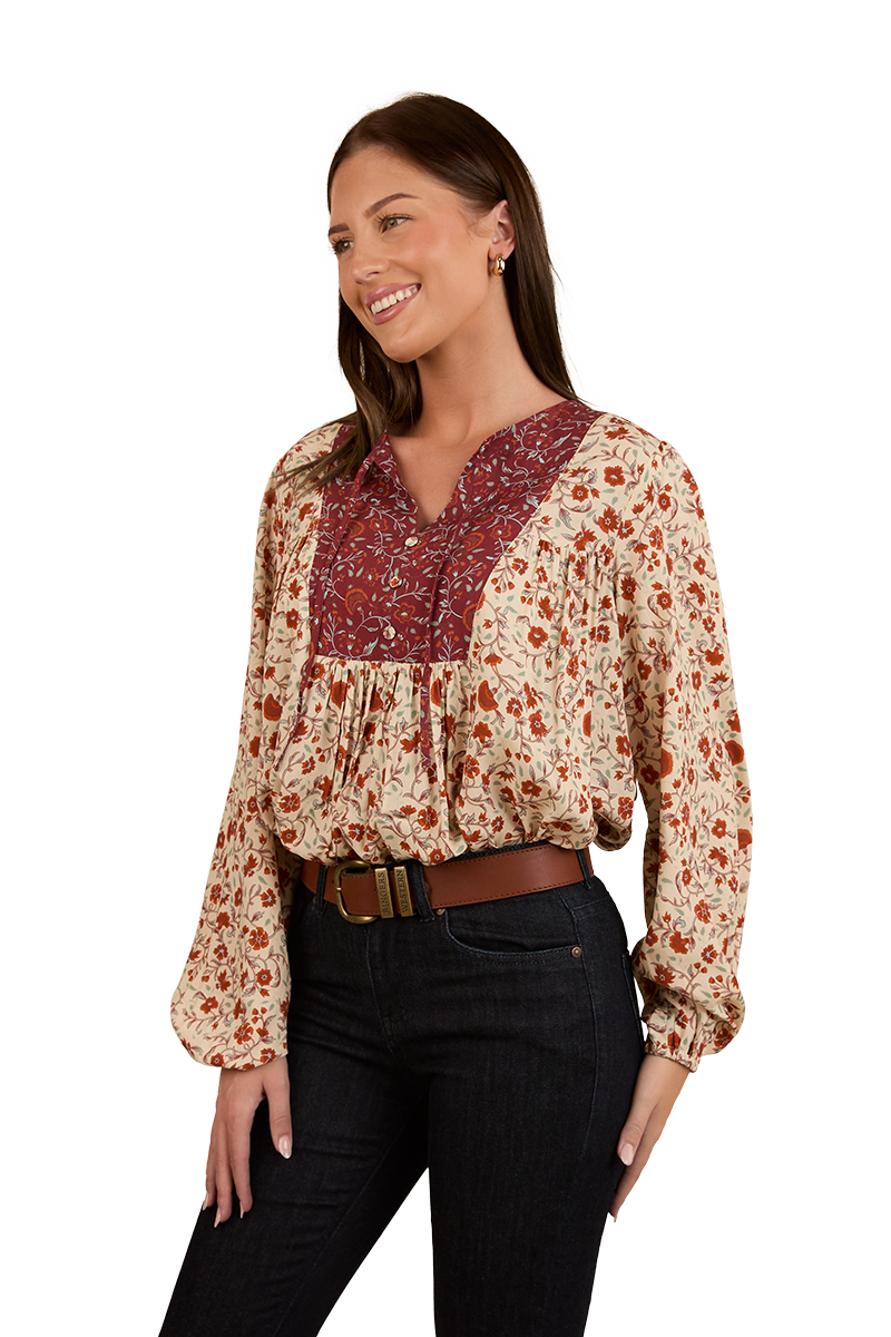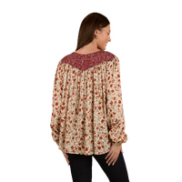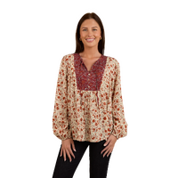 Thoughtfully created from 100% EcoVera Viscose, a lightweight fabric derived from sustainable wood and produced into eco-responsible viscose fibres, the Twyla fashion top is an environmentally conscious choice whilst offering a soft and comfortable feel against the skin. The feminine and floaty silhouette blends seamlessly with an allover signature floral print, accented by contrasting western inspired yoke panels - the ultimate fusion of tradition and western charm. The Twyla offers versatility in spades, pairing perfectly with neutrals and denim hues, this fashionable top can be worn tucked in or left untucked depending on personal preference - ensuring this garment will have you looking the part regardless of the occasion. A front button placket allows for ease of wear, whilst gathered puff sleeves are a romantic and playful finishing touch.