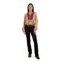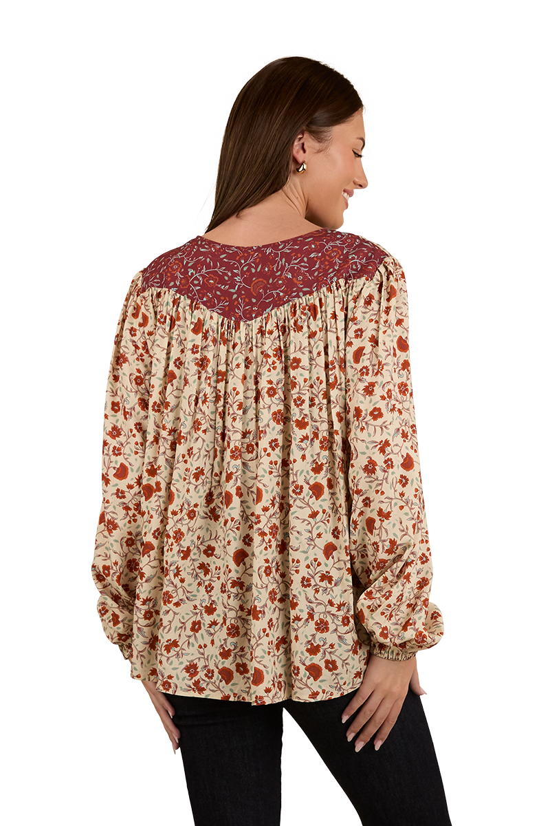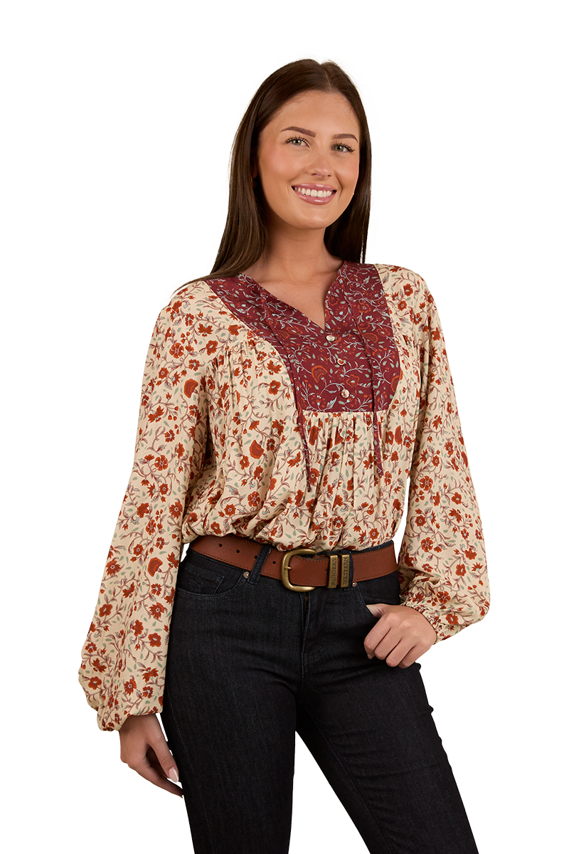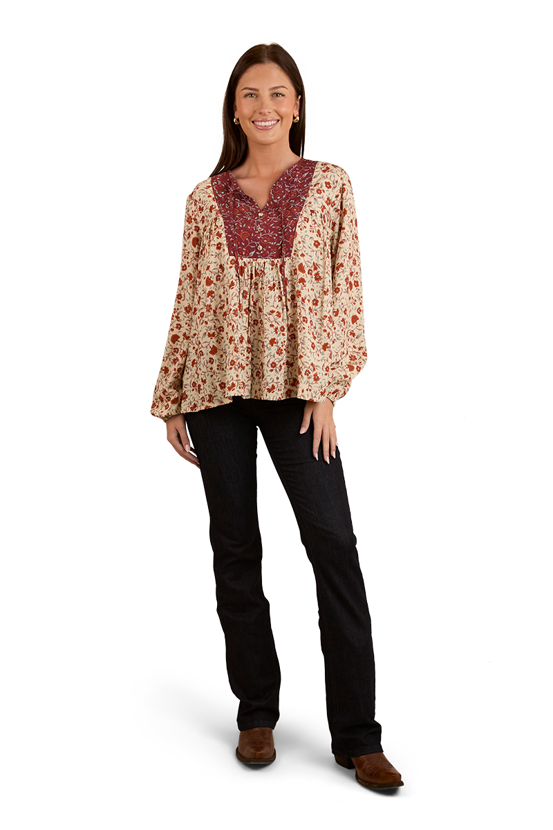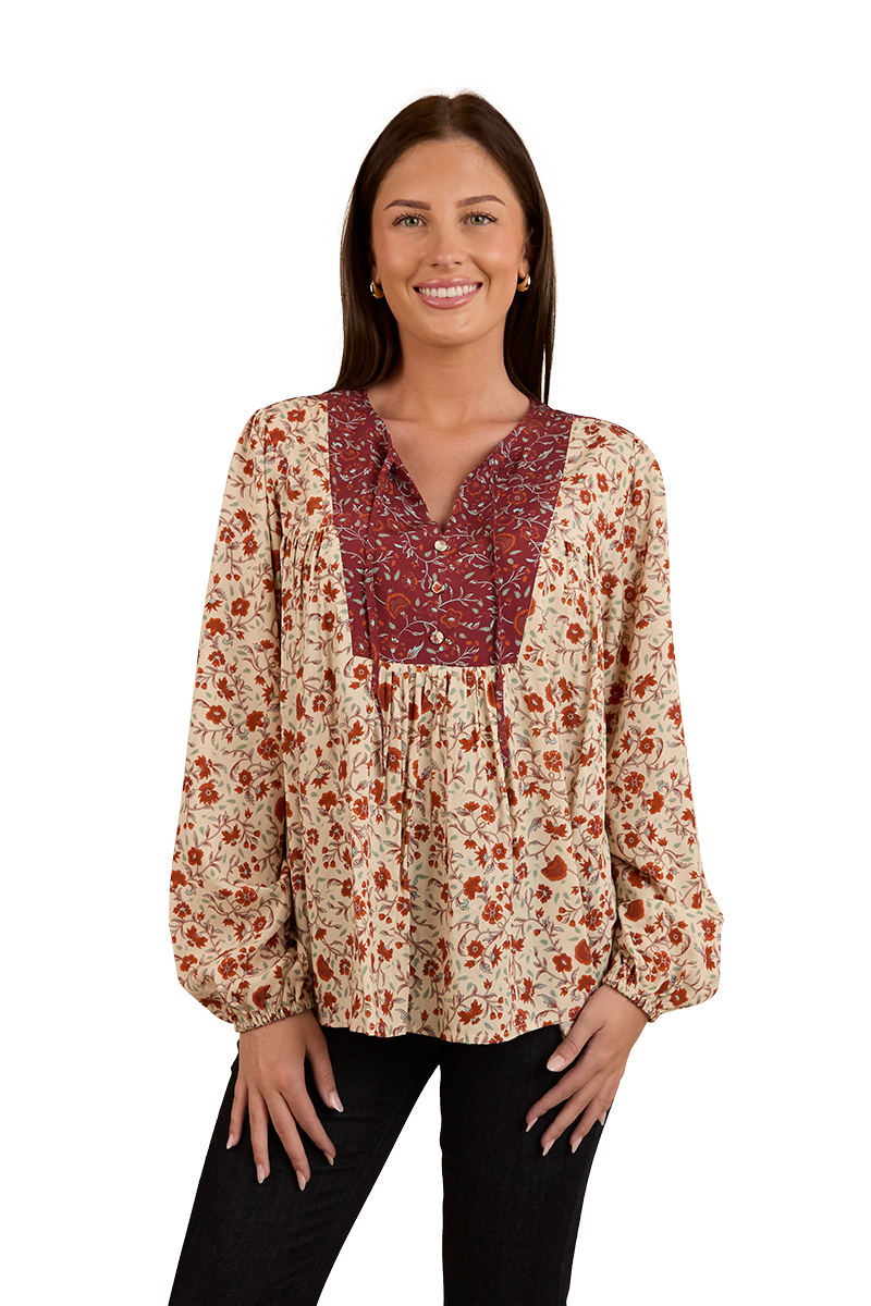 Thoughtfully created from 100% EcoVera Viscose, a lightweight fabric derived from sustainable wood and produced into eco-responsible viscose fibres, the Twyla fashion top is an environmentally conscious choice whilst offering a soft and comfortable feel against the skin. The feminine and floaty silhouette blends seamlessly with an allover signature floral print, accented by contrasting western inspired yoke panels - the ultimate fusion of tradition and western charm. The Twyla offers versatility in spades, pairing perfectly with neutrals and denim hues, this fashionable top can be worn tucked in or left untucked depending on personal preference - ensuring this garment will have you looking the part regardless of the occasion. A front button placket allows for ease of wear, whilst gathered puff sleeves are a romantic and playful finishing touch.