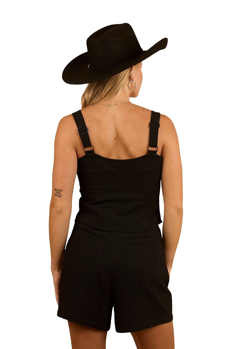 Take centre stage with the Westley Embroidered Fashion Top. Created from a blend of linen and cotton, the Westley offers superior softness and breathability whilst having the textural characteristics linen is known and loved for. A functional front button placket and v-hem create a slightly tailored silhouette, flattering the shoulders and the waist. The Westley can be worn as part of a set or styled with your favourited denim for the perfect summer BBQ or festival outfit, stepping up to any occasion in style. Adjustable shoulder straps are a thoughtful feature, allowing you to customise the fit to your desired preference. Feature applique embroidery in a contrasting hue is an accentuating detail that perfectly embodies country spirit and western charm.