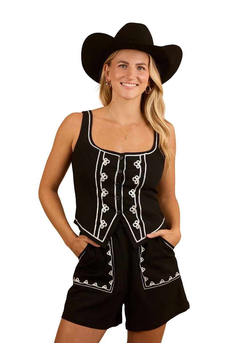 Ringers Western Womens Westley Embroidered Fashion Top (224084RW) Black 6