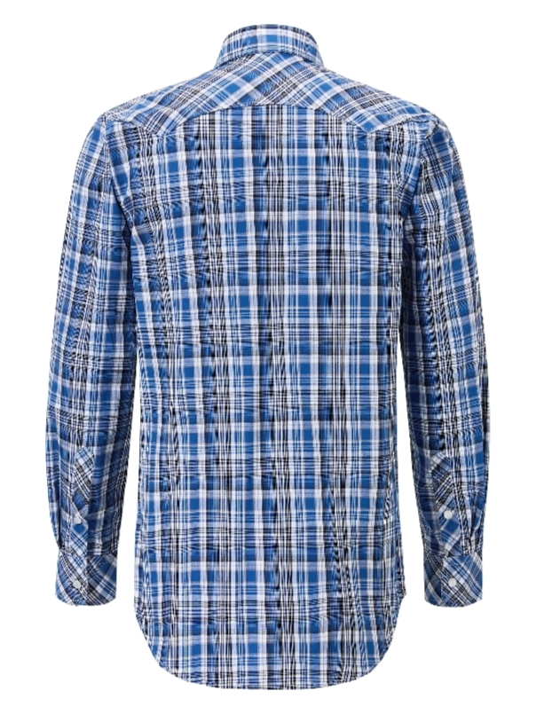 Men's Pearl Snap Button Long Sleeve Shirt, Ultra Fine Cotton, Yarn Dyed Check, Double Pocket, Classic Fit