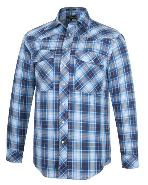 Ritemate Mens Pilbara Western Snap Button L/S Shirt (RMPW009) Navy/Blue/White S