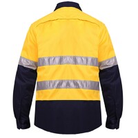 Ritemate Unisex Vented Open Front Lightweight L/S Work Shirt with Reflective Tape (RM107V2R) Yellow/Navy M