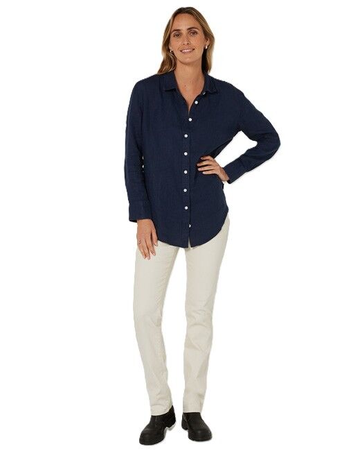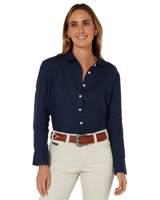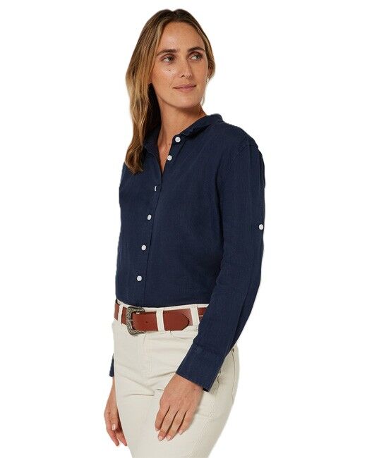 Ritemate Womens Pilbara Classic Fit Linen L/S Shirt (RMPC005) Navy 8