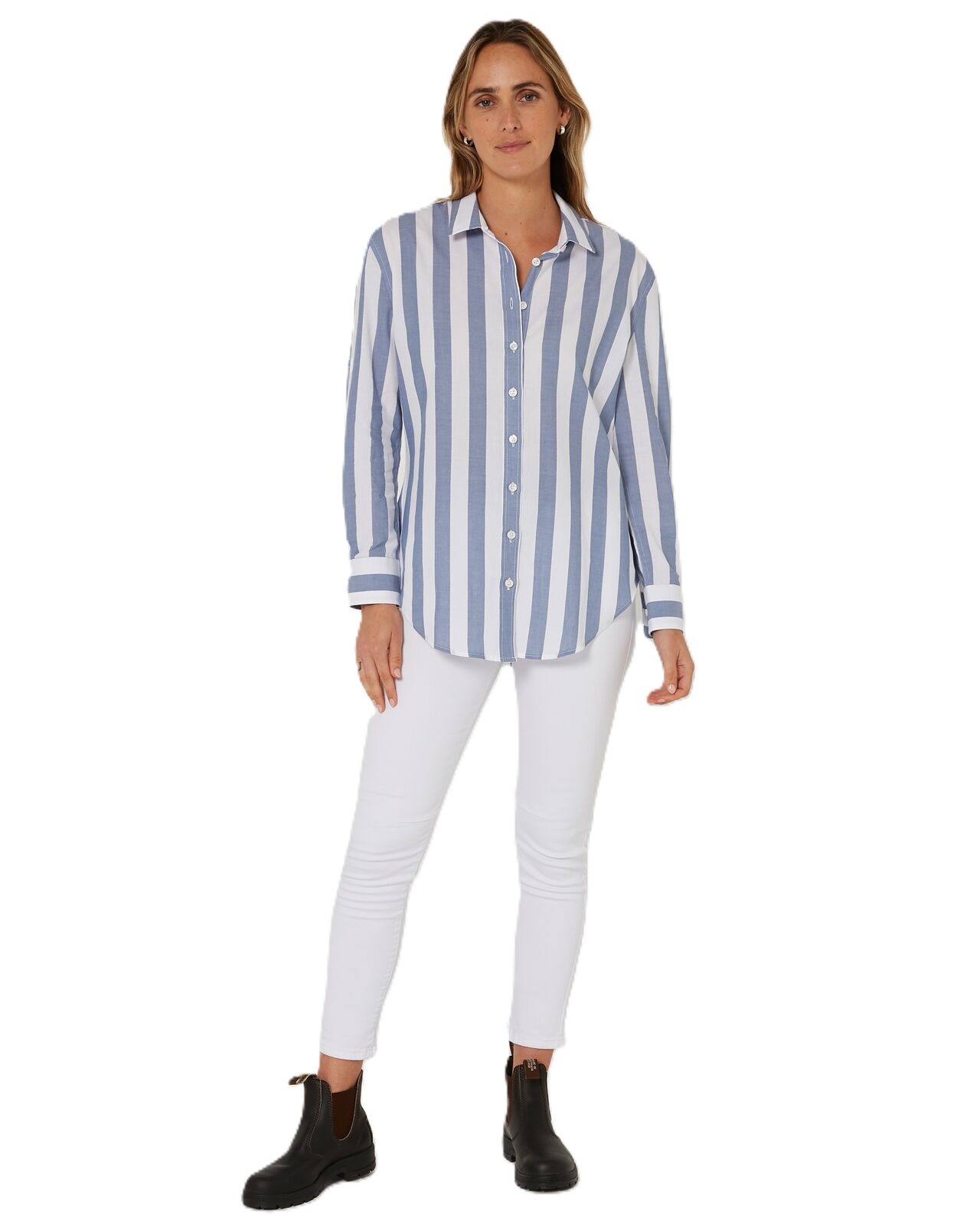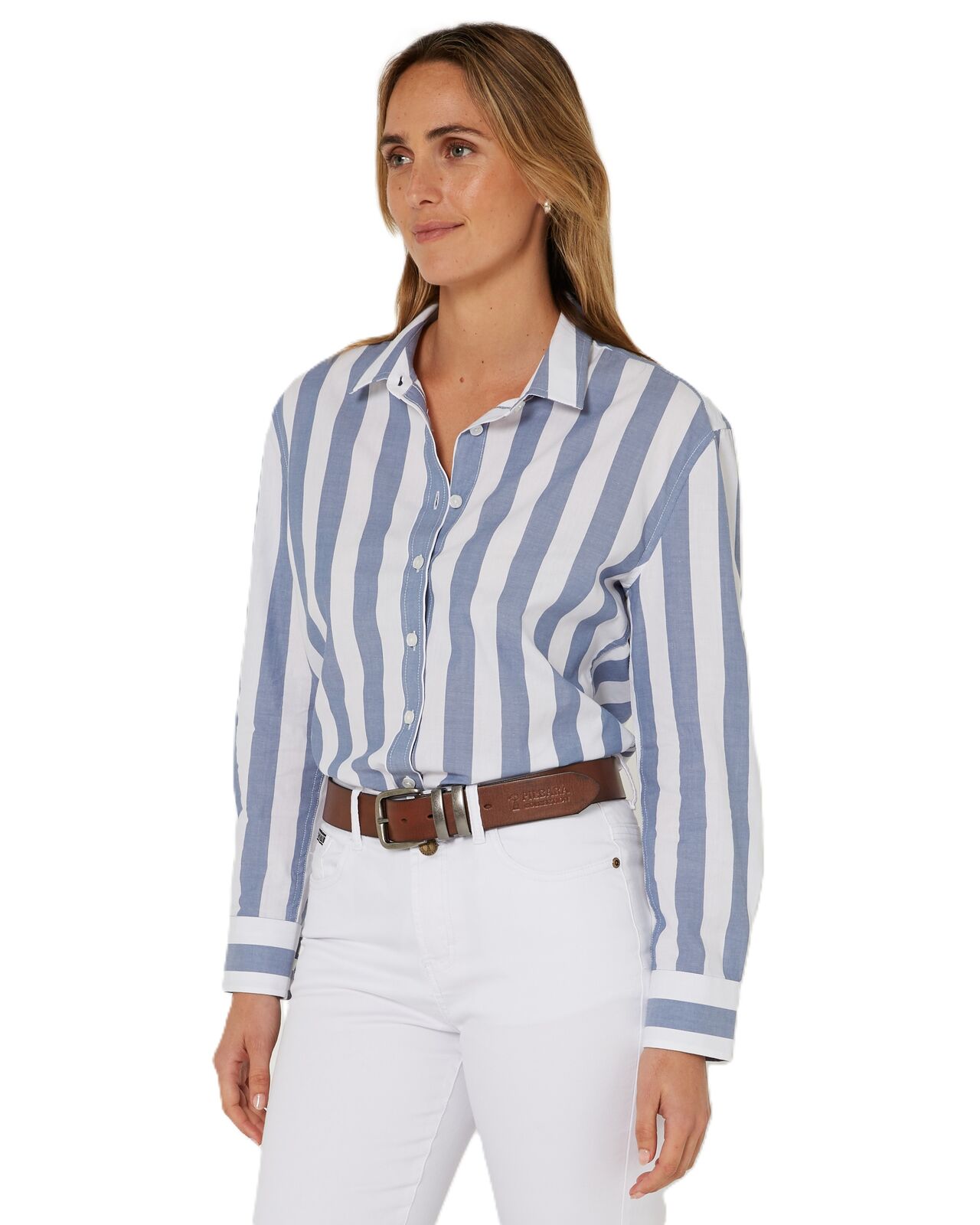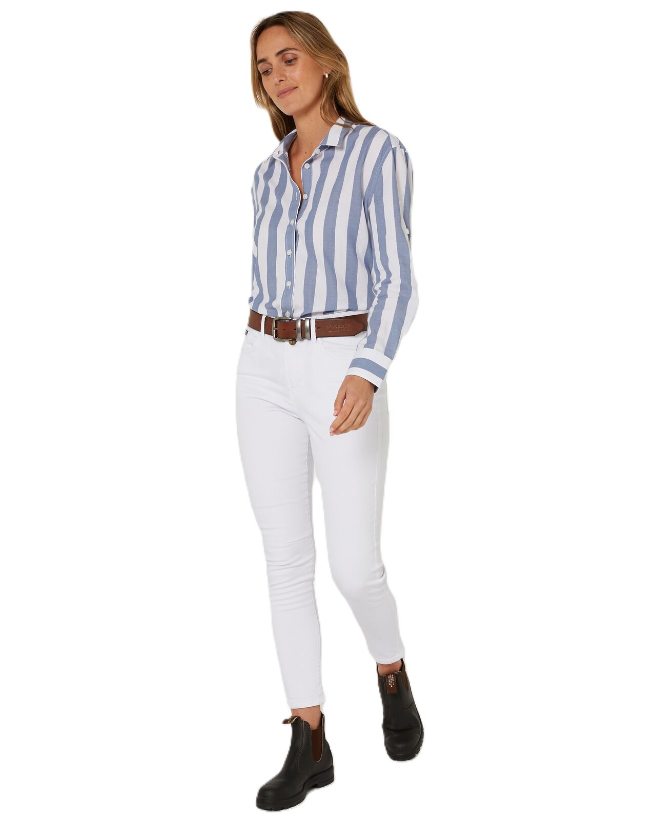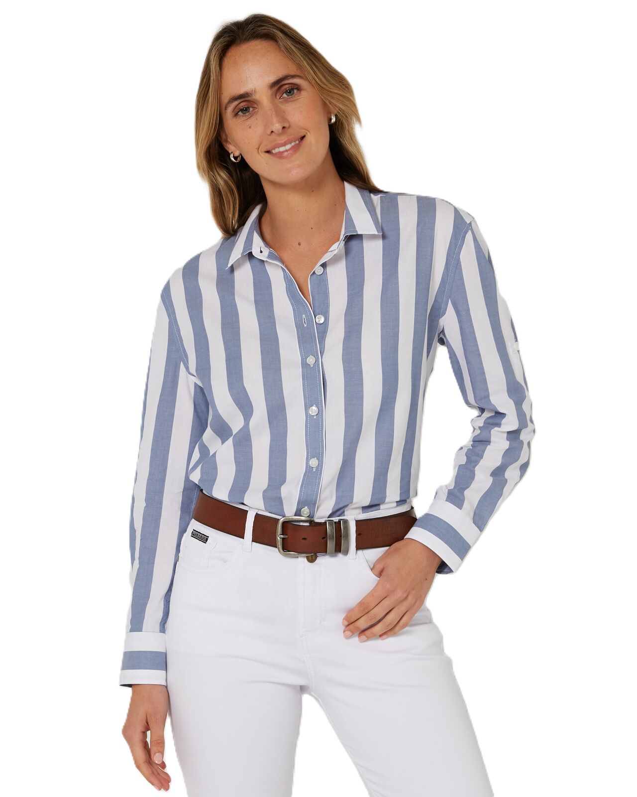 Ritemate Womens Pilbara Jacquelin Classic Cotton L/S Shirt (RMPC154) Chambray/White 10