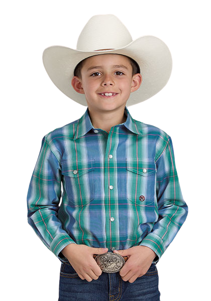 Roper Boys Amarillo Collection L/S Shirt (30278317) Plaid Blue XS