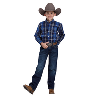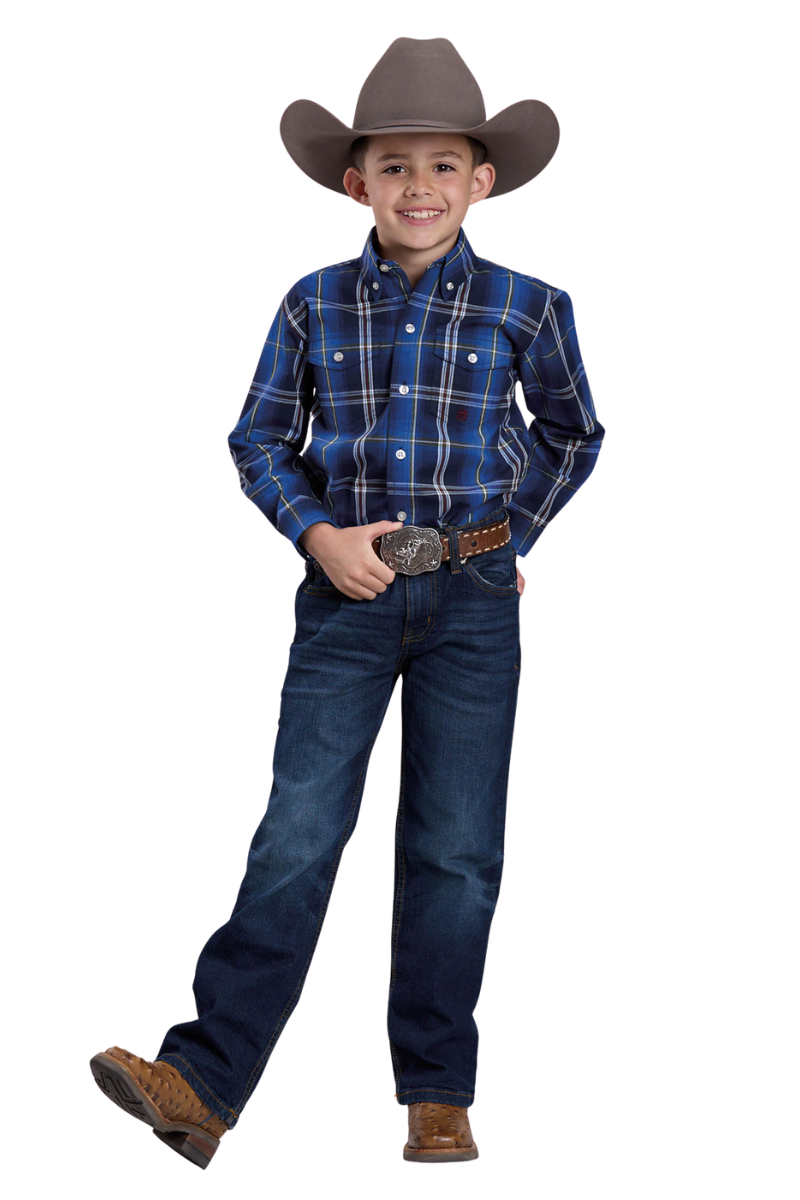 Roper Boys Amarillo Collection L/S Shirt (30378056) Plaid Blue XS