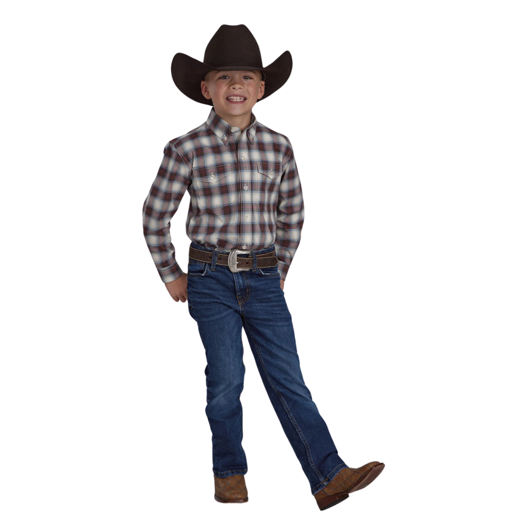 Roper Boys Amarillo Collection L/S Shirt (30378700) Plaid Brown XS
