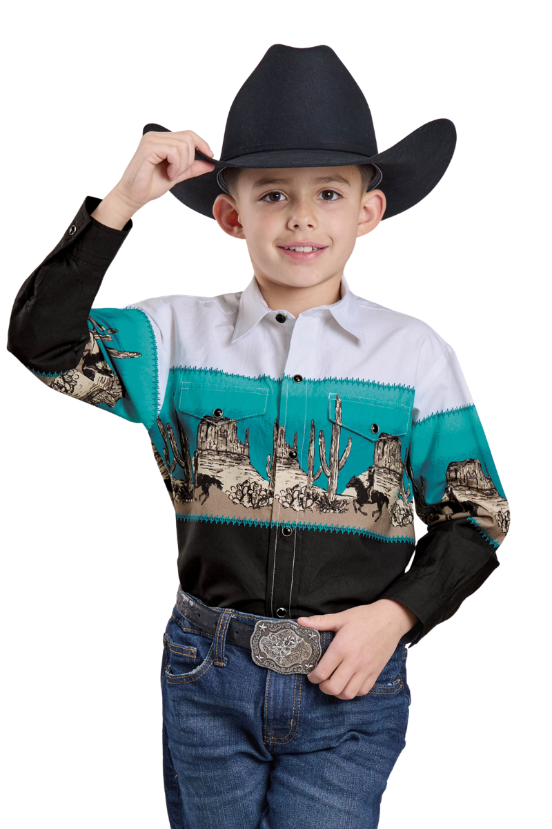 Roper Boys Vintage Collection L/S Shirt (30421701) Print Black XS