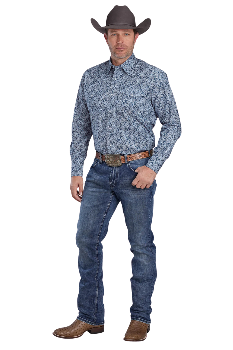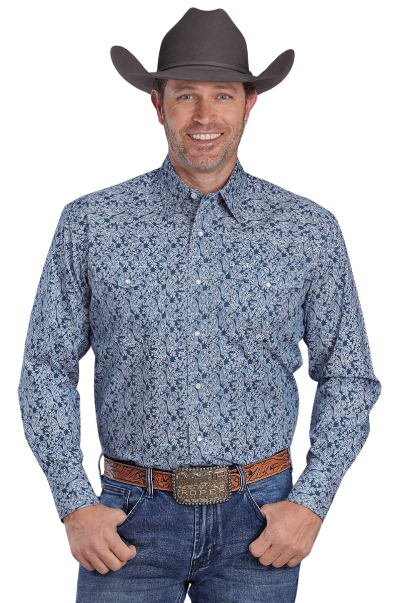 Roper Mens Amarillo Collection L/S Shirt (1225319) Print Blue XL