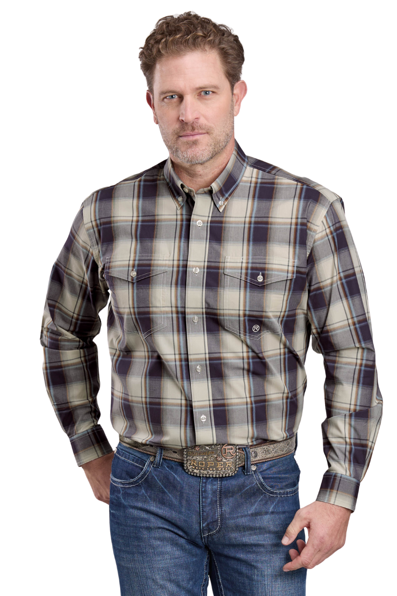 Roper Mens Amarillo Collection L/S Shirt (1378041) Plaid Purple S