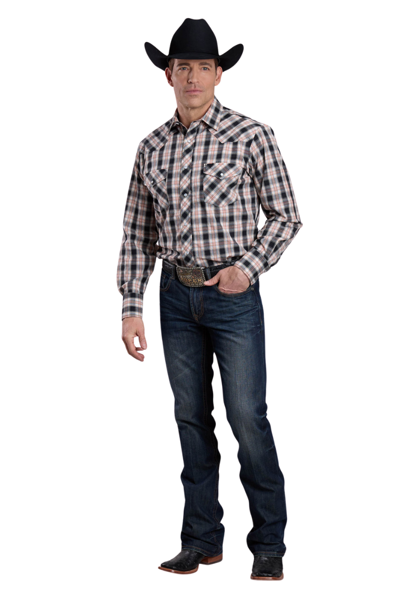 Roper Mens Karman Classic 55/45 Collection L/S Shirt (01101080) Plaid Black L [SD]