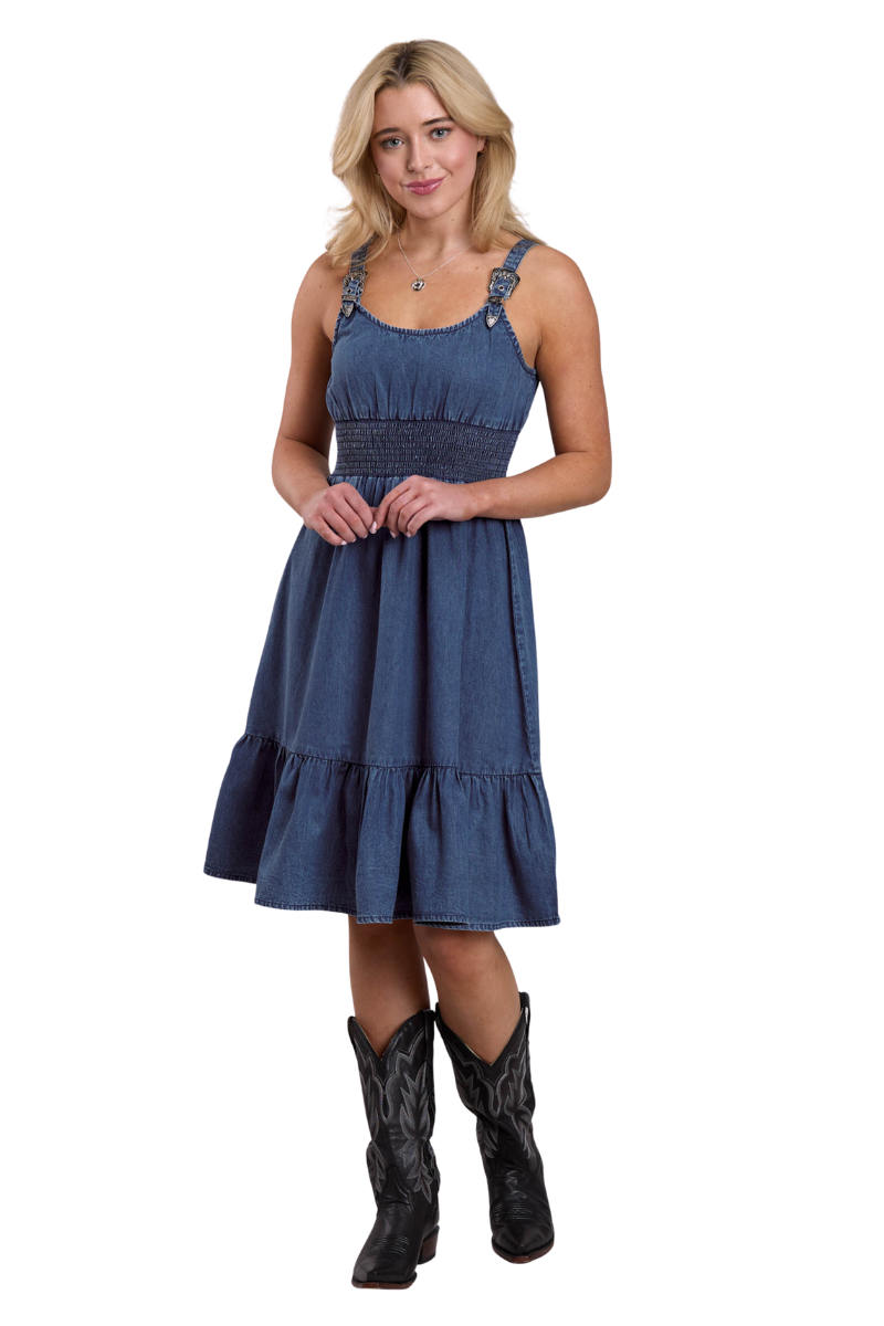 Roper Womens Five Star Collection Sleeveless Dress (57594173) Solid Blue XS