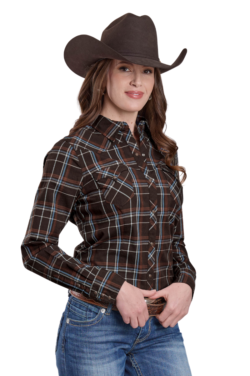 Roper Womens West Made Collection L/S Shirt (50062709) Plaid Brown XS