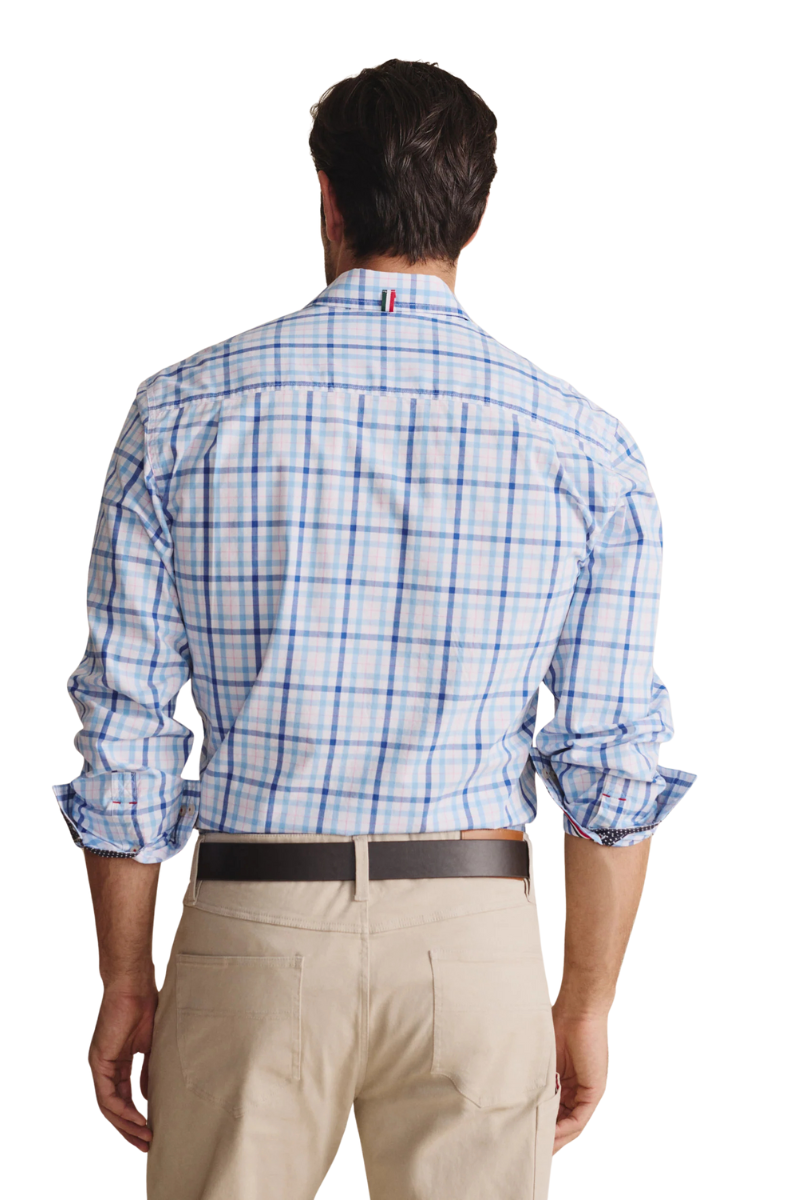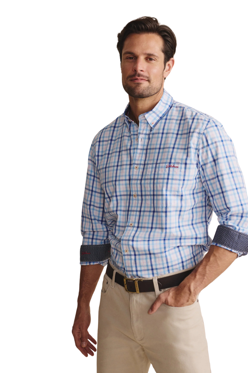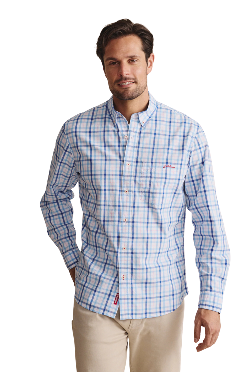 A true blue essential for everyday wear, the effortlessly classic long-sleeve Aberdeen shirt combines superior comfort with a touch of refinement. Made from 100% cotton poplin, this dress shirt features a lined chambray inside collar stand cuffs, back yoke and front placket, and signature red S.Kidman detailing. Equally versatile, it pairs seamlessly with jeans for a laid-back look or a blazer for some smart-casual sophistication.
