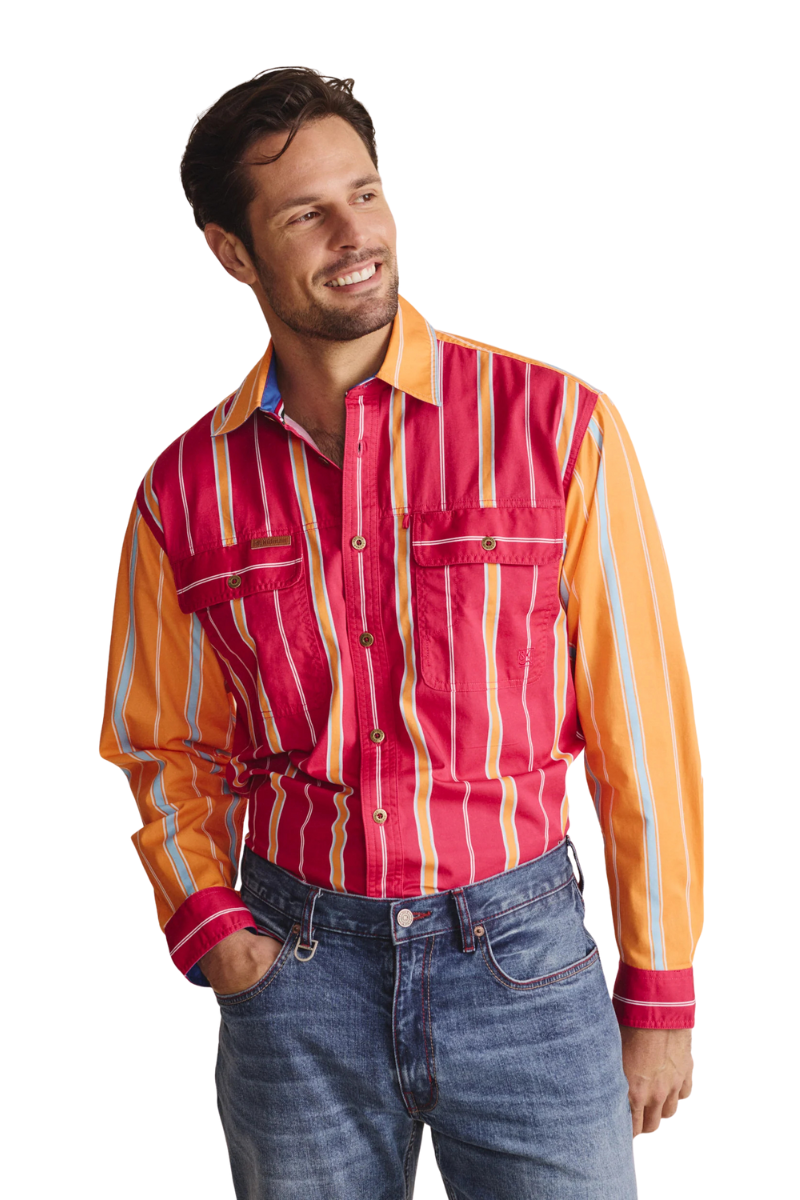The Armstrong lightweight full placket shirt is for those who don’t shy away from anything, especially getting the job done. Stand out in this 100% lightweight cotton, UPF50+ work shirt. Reinforced double-stitched seams, extra-large front pockets, and a Herringbone-reinforced sleeve pocket keep essentials secure. underarm ventilation eyelets keep you cool, while heavy-duty metal buttons stitched in S.Kidman red ensure lasting strength. Finished with 100% cotton stripe tape reinforcements. It’s made to work as hard as you do.